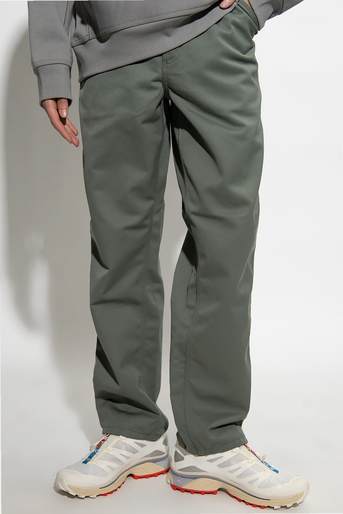 Green ‘Simple’ trousers from Carhartt WIP. Fastened with a zip and button, this pair features four slip pockets, a logo patch at the back and slightly tapered legs.
