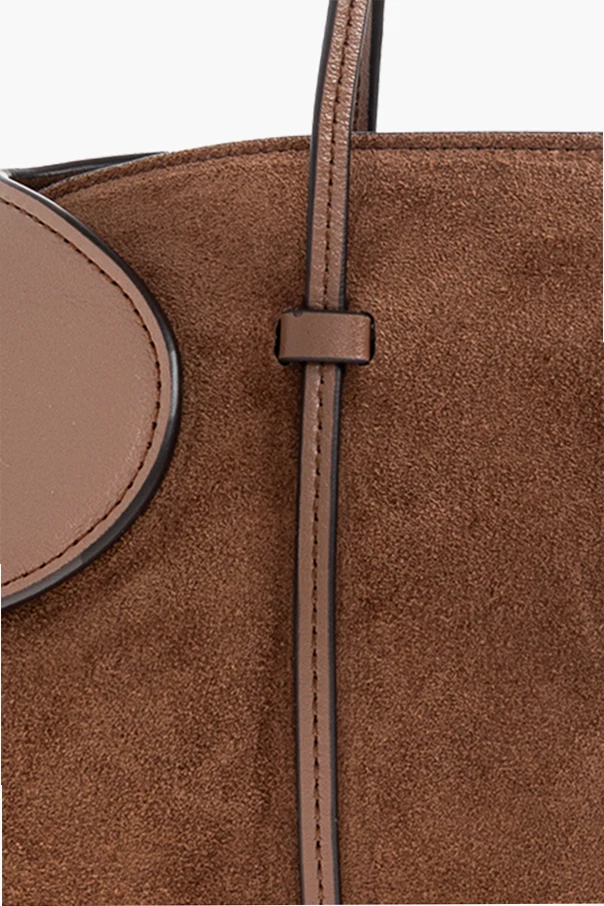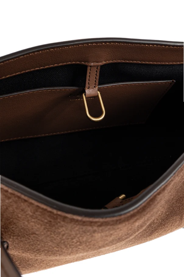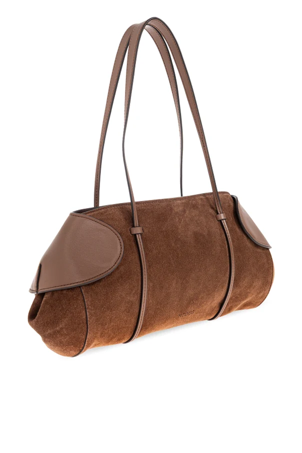 Die Kombination aus weichem, braunem Veloursleder und glattem Kalbsleder schafft ein einzigartiges Spiel der Texturen, das der Tasche Tiefe und Noblesse verleiht. Der einheitliche, braune Farbton, frei von zusätzlicher Verzierung, fügt sich in die minimalistische Ästhetik ein und unterstreicht die Exklusivität dieses von NEOUS signierten Produkts.