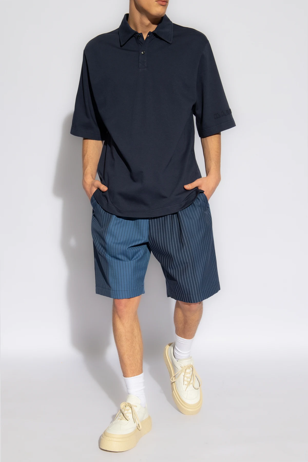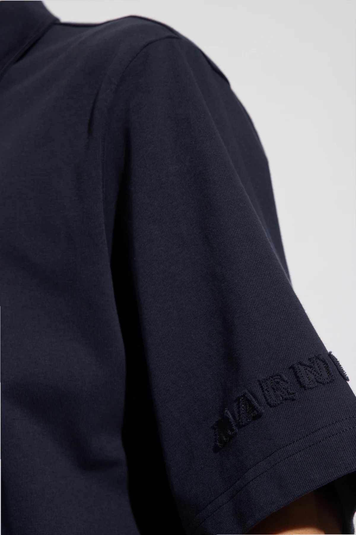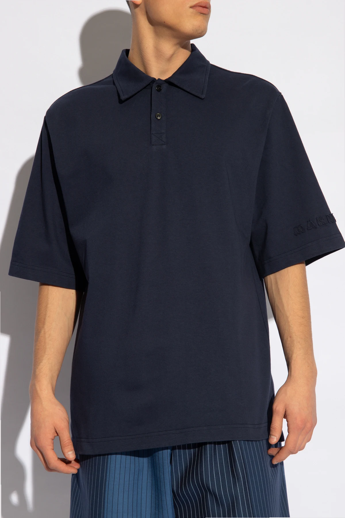 Navy polo shirt from Marni. Made of cotton, this design features buttons and short sleeves with raw-trimmed logo patches.
