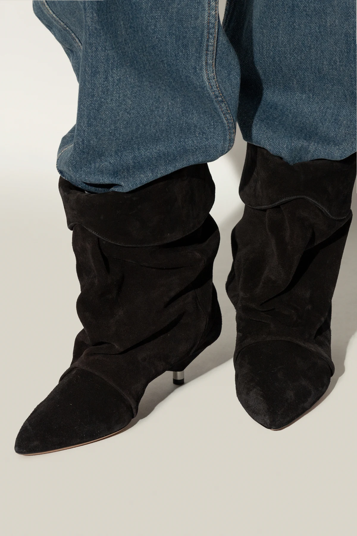 Wir präsentieren Ihnen die Wildlederstiefeletten mit Absatz "Edrik" von der talentierten Designerin Isabel Marant . Diese schwarzen Stiefeletten begeistern mit elegantem Design und außergewöhnlicher Vielseitigkeit, indem sie luxuriöses Aussehen mit dem Komfort des täglichen Tragens verbinden.