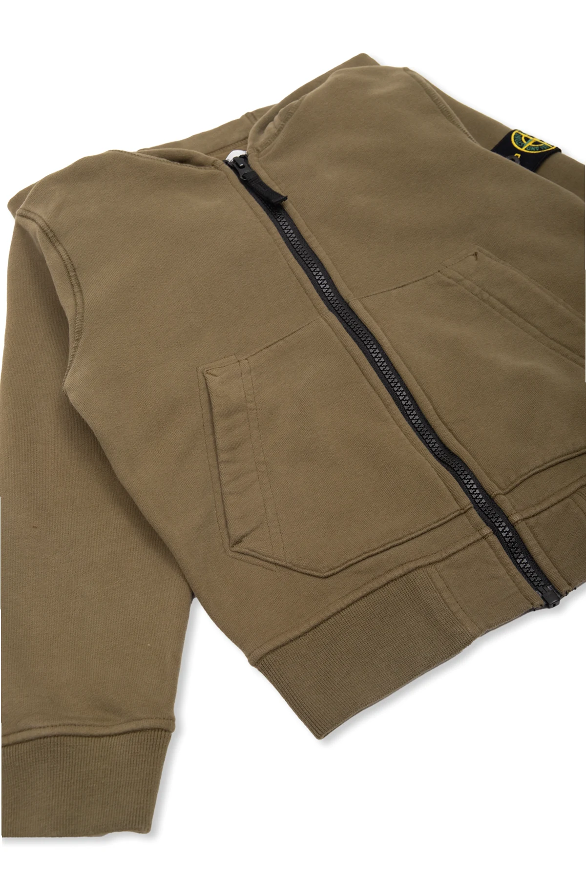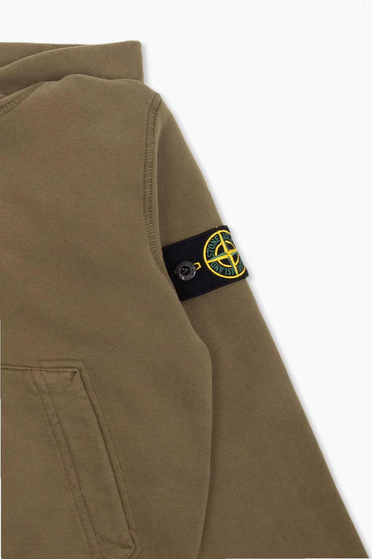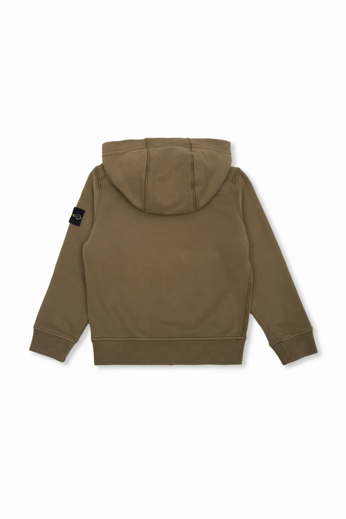Green hoodie from Stone Island Kids. Made of cotton, this style features a green, black and yellow logo patch, two slip pockets, long sleeves and ribbed trims on the bottom hem and cuffs.