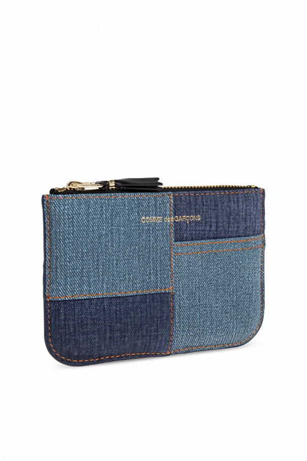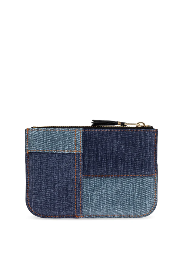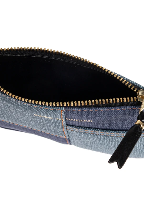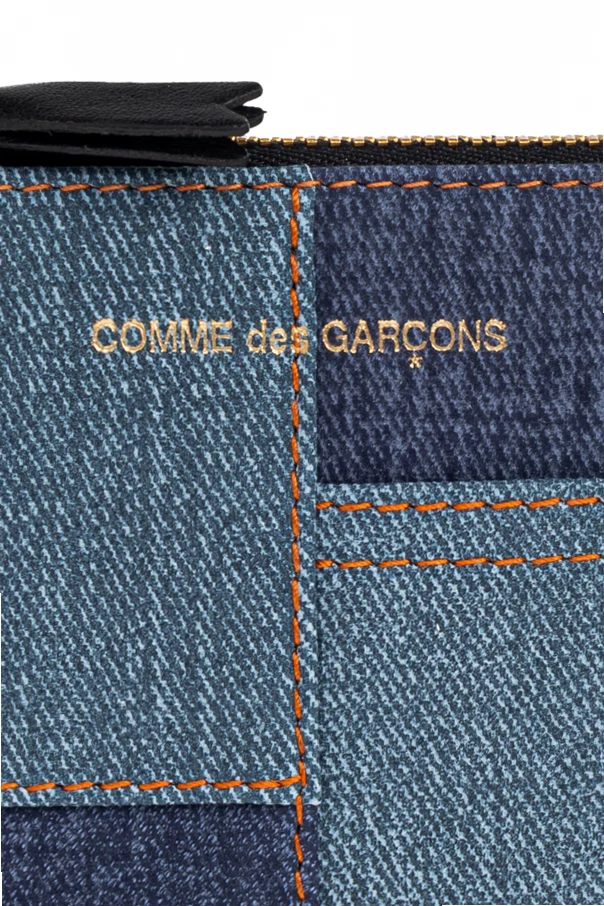 Die Leder-Clutch von Comme des Garçons ist die Essenz der Raffinesse, wo Moderne auf Klassik trifft. Die rechteckige, flache Form mit sanft abgerundeter unterer Ecke harmoniert perfekt mit dem inspirierenden Patchwork-Muster in verschiedenen Blautönen, die an Denim erinnern.