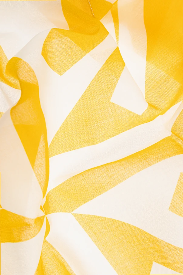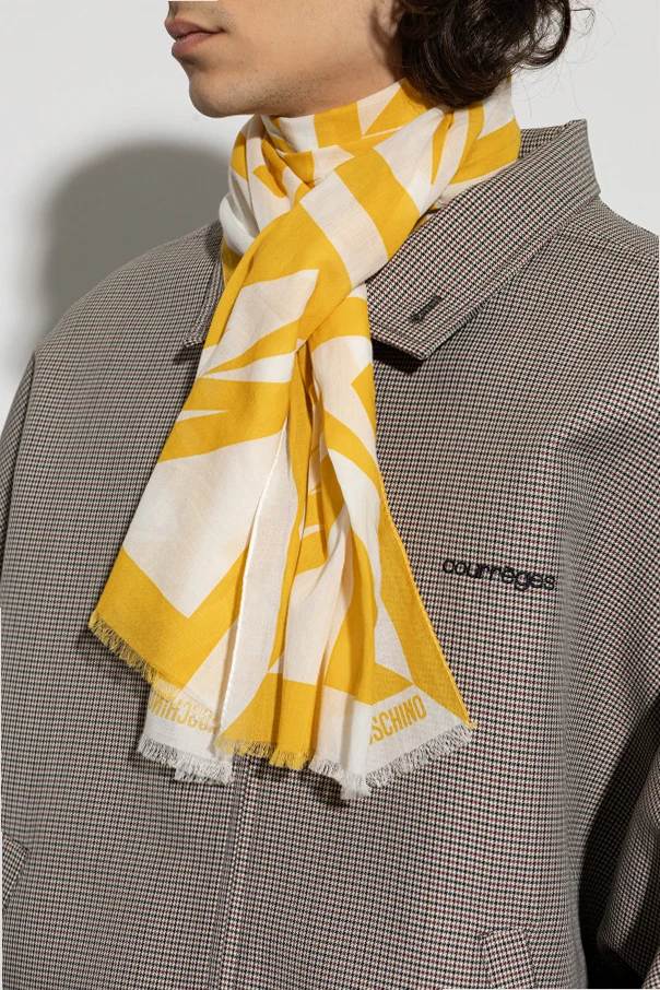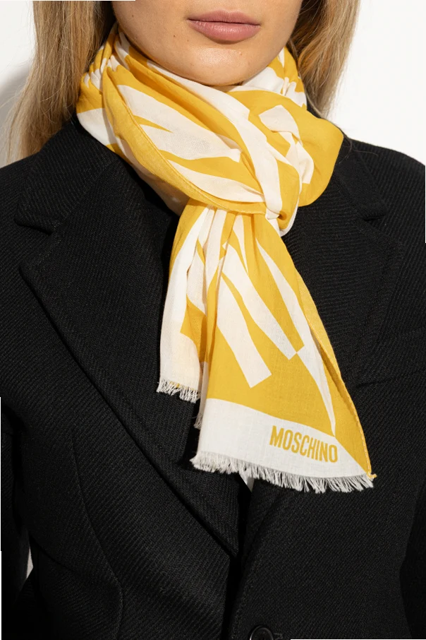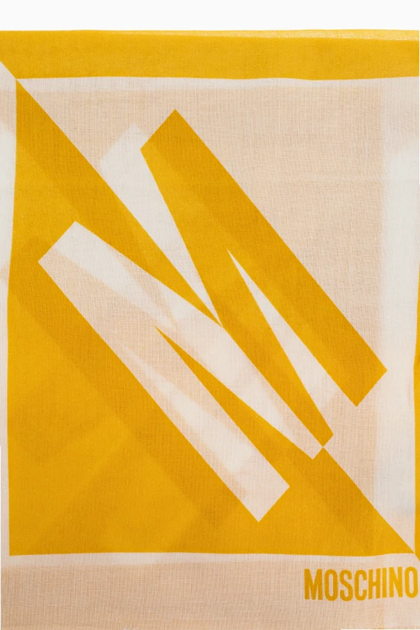 Logo-Schal der Marke Moschino ist ein wahres Manifest zeitgenössischer Eleganz und ungezwungener Leichtigkeit – zugleich spiegelt er den kühnen Stil des Gründers des Modehauses wider. Das Modell in Gelb besticht durch seine rechteckige Form sowie das markante, grafische „M“-Motiv in abstrakter Ausführung, das effektvoll mit dem hellen Hintergrund kontrastiert.