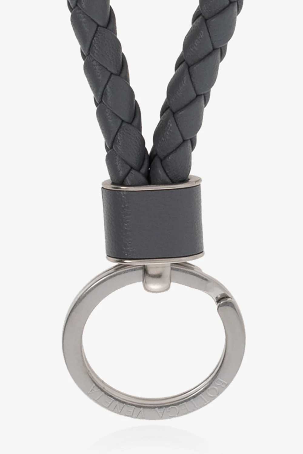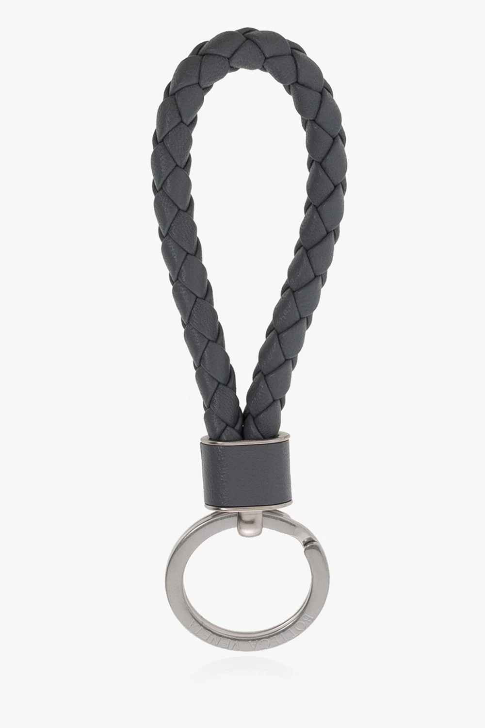 Grey and silver-tone keyring from Bottega Veneta. This item showcases the brand’s signature Intreccio weave and engraved logo.
