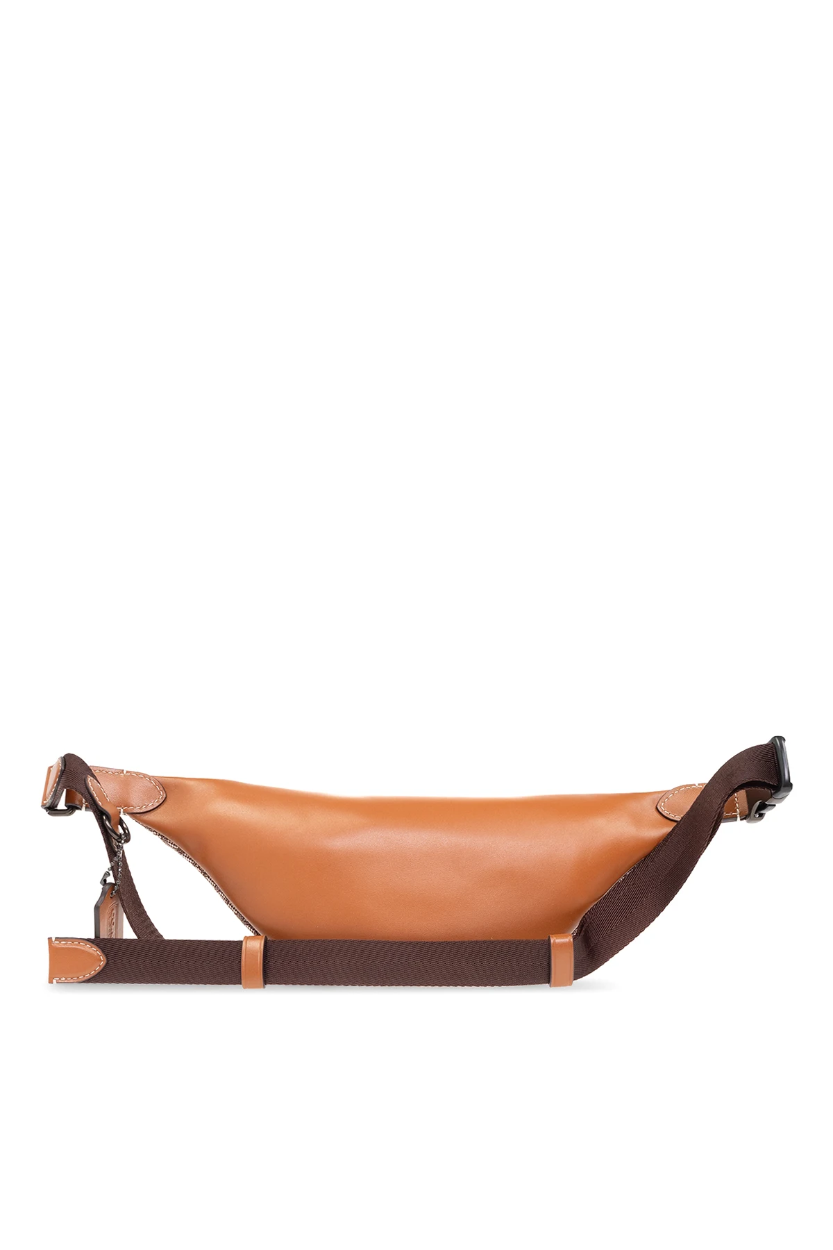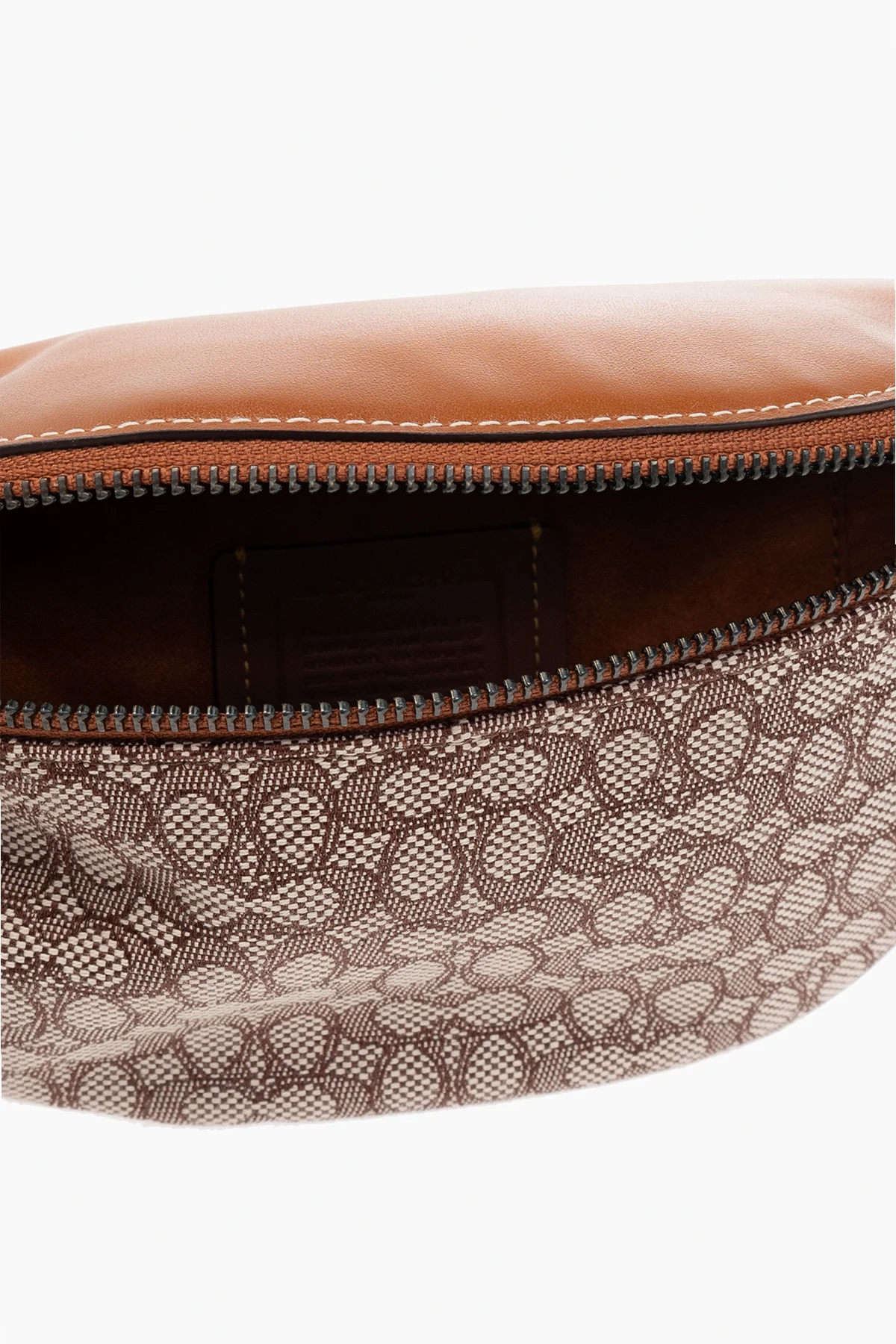 Brown and cream belt bag from Coach. Crafted from cotton and recycled material, this design fastens via a zip and showcases a jacquard monogram pattern. It is complete with an adjustable strap, antiqued silver-tone metal hardware and one internal compartment with a slip pocket.