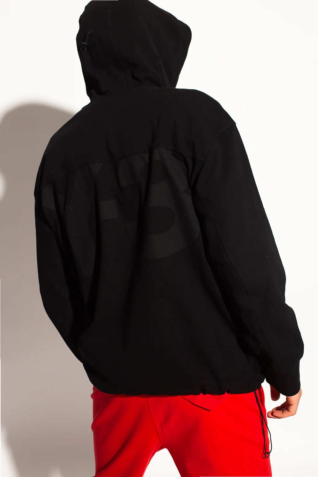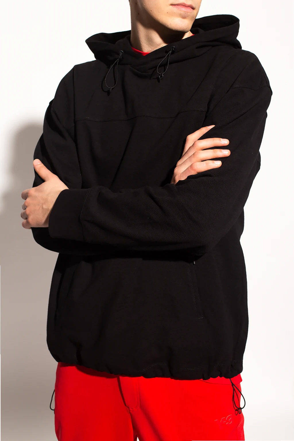 Black sweatshirt with a drawcord-adjustable hood and hem from Y-3 Yohji Yamamoto. Crafted from a cotton and linen blend, this hoodie features two zipped pockets on the front and long sleeves with elasticated cuffs.
