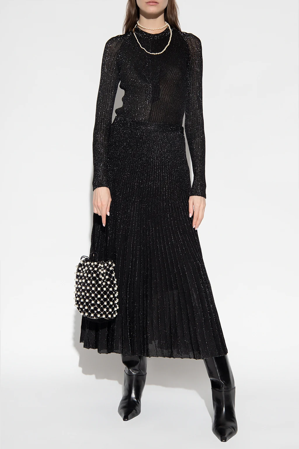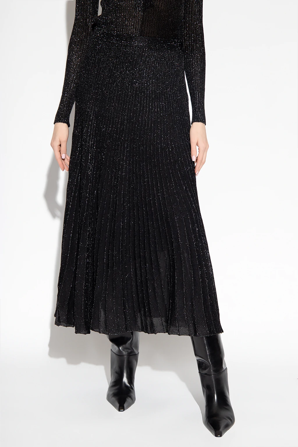 Black pleated skirt from Proenza Schouler, the ‘Re Edition’ collection. This pair features an elastic waistband, concealed side zip and silver-tone metallic fibres.