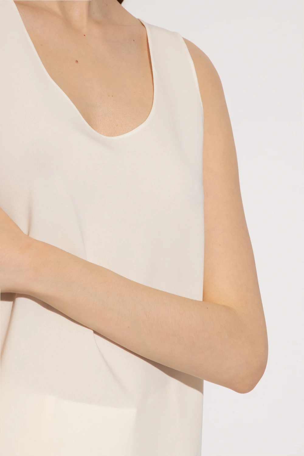 Cream ‘Jacqueline’ tank top from The Row. With a flared silhouette, this style features a sleeveless silhouette with a round neck.