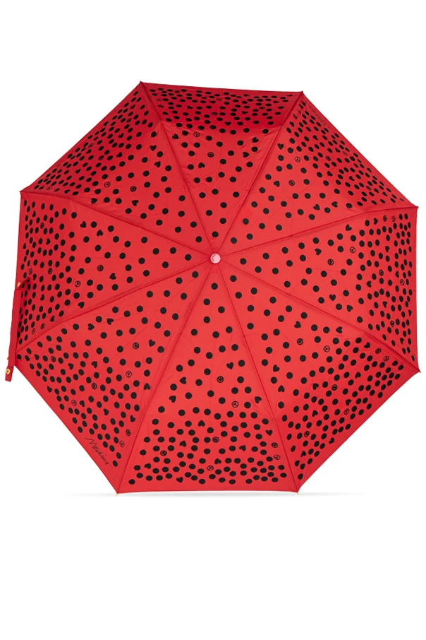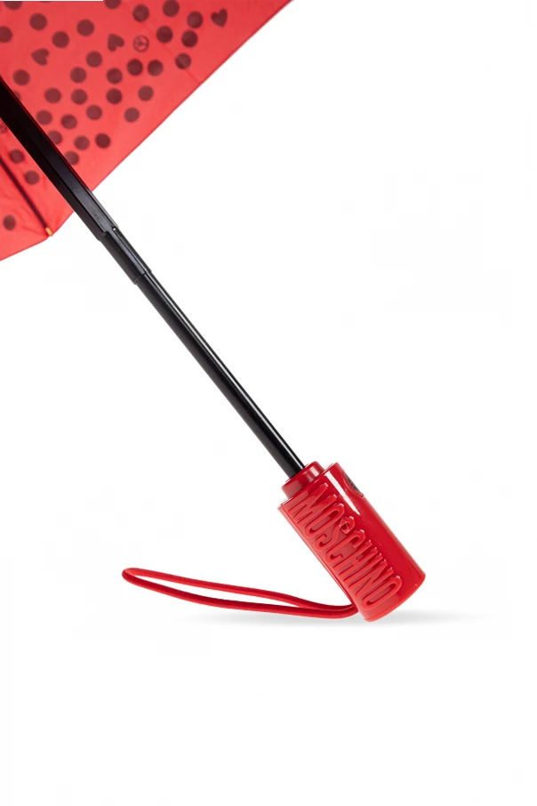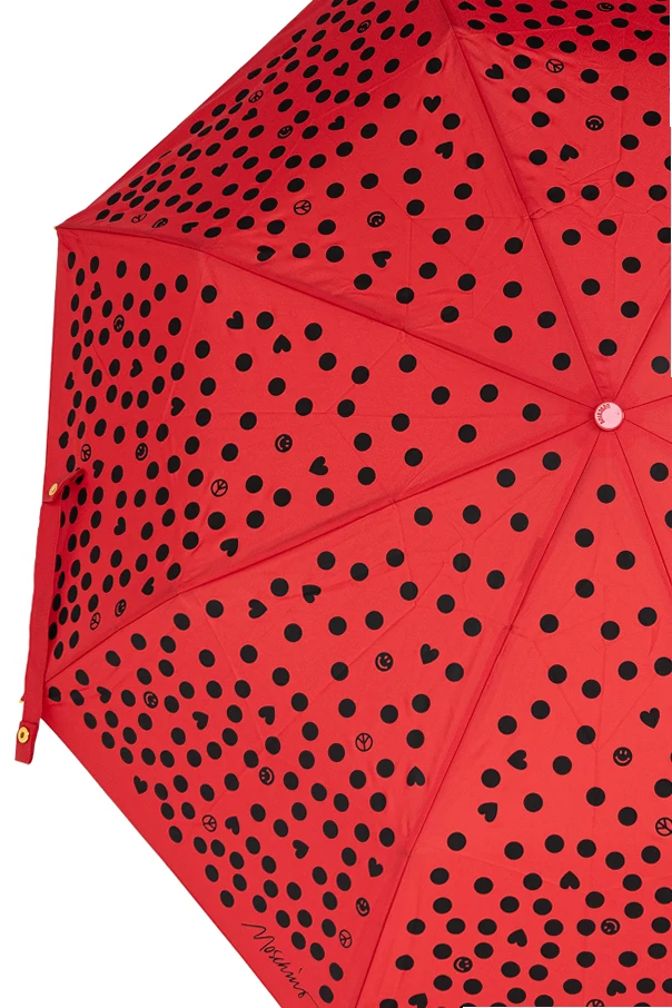 Der rote Baldachin, verziert mit einem einzigartigen Muster unregelmäßiger schwarzer Punkte, strahlt frische Lebensfreude aus und setzt einen markanten Akzent im urbanen Stil. Details wie das dezente Designerlogo am Griff sowie am Rand des Schirms unterstreichen die exklusive Herkunft und die Zugehörigkeit zur Moschino-Kollektion – einer Marke, die für ihren Esprit, Luxus und Optimismus geschätzt wird.