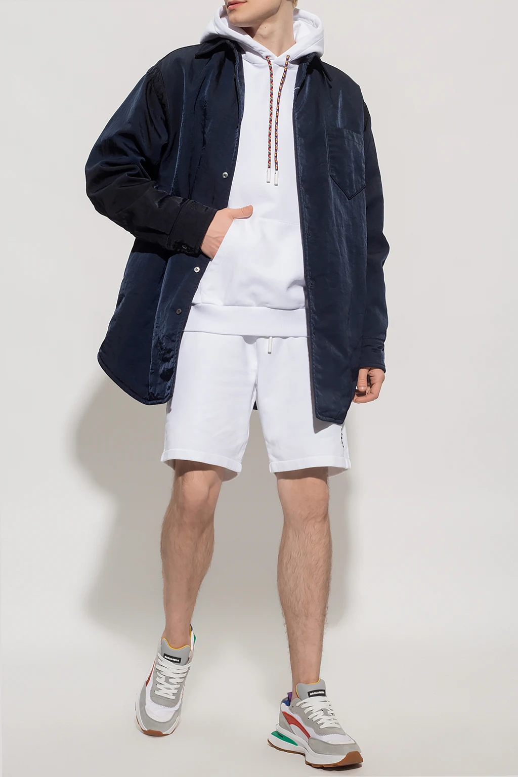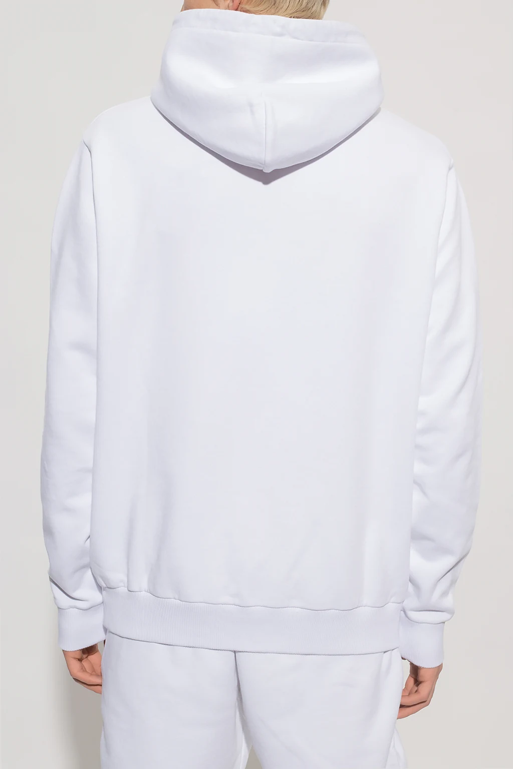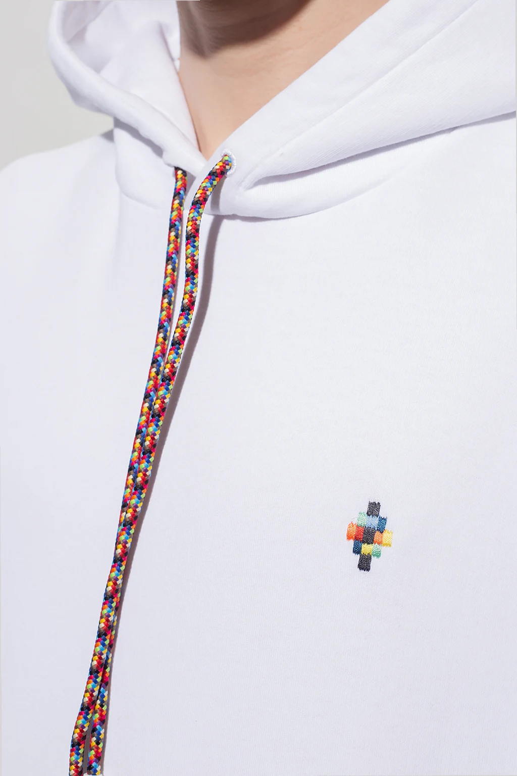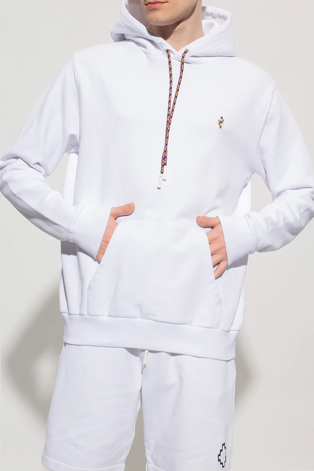 White hoodie from Marcelo Burlon. Made of cotton, this garment features a drawstring hood, multicolored logo embroidery, slip pocket and ribbed trims at the hem and cuffs.