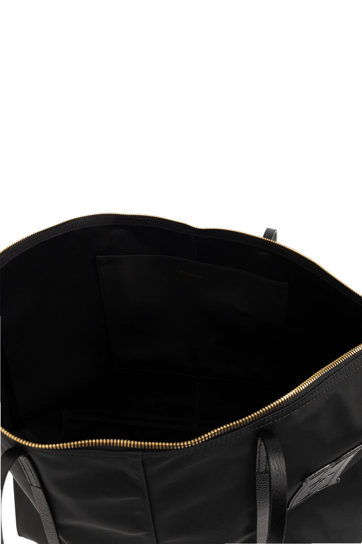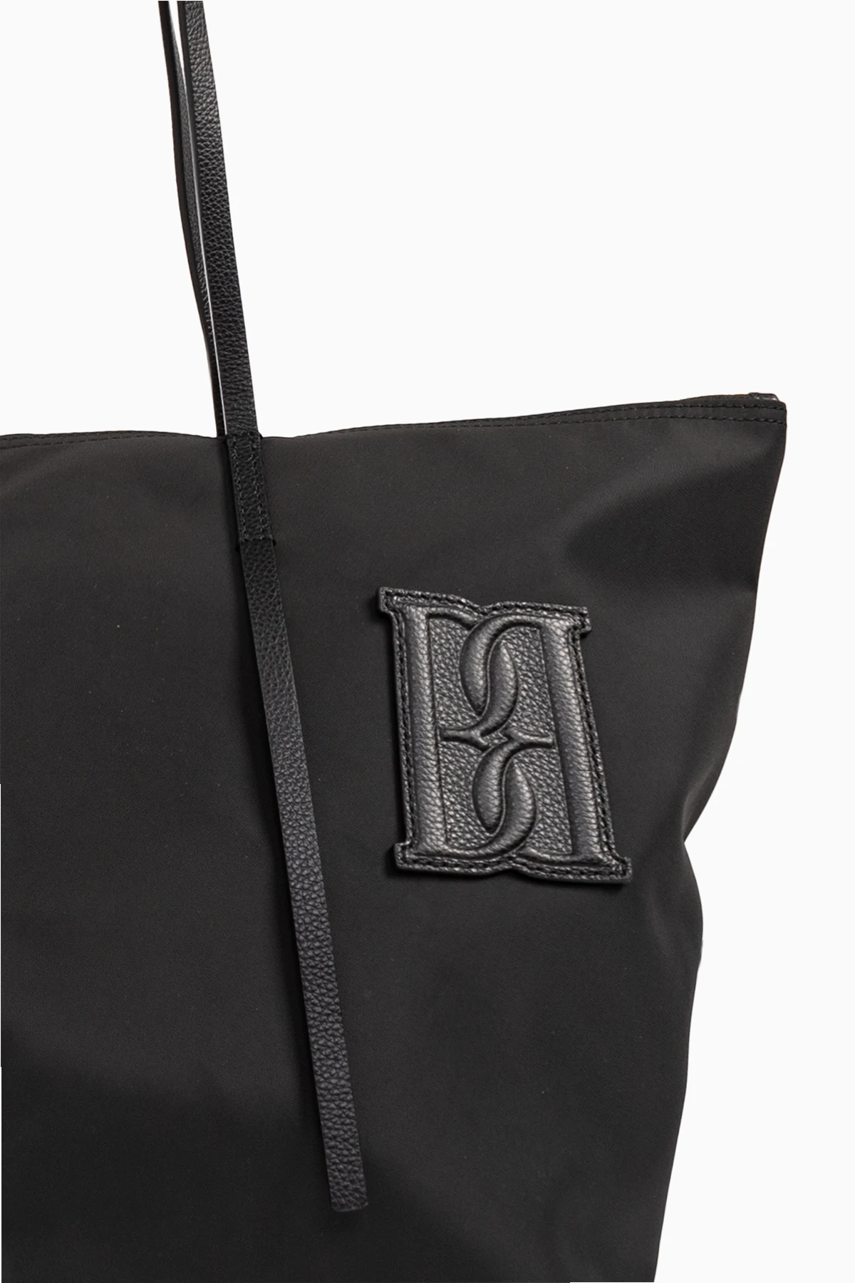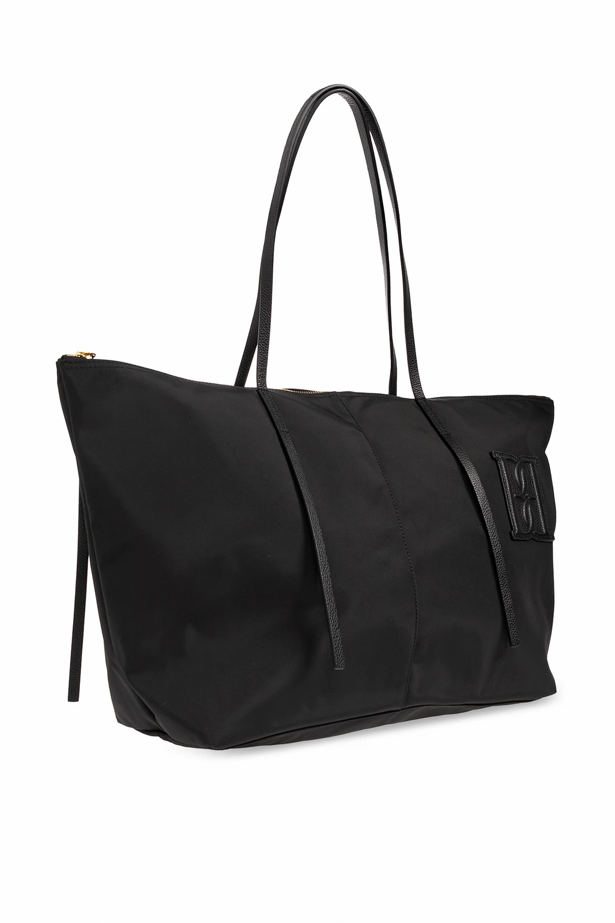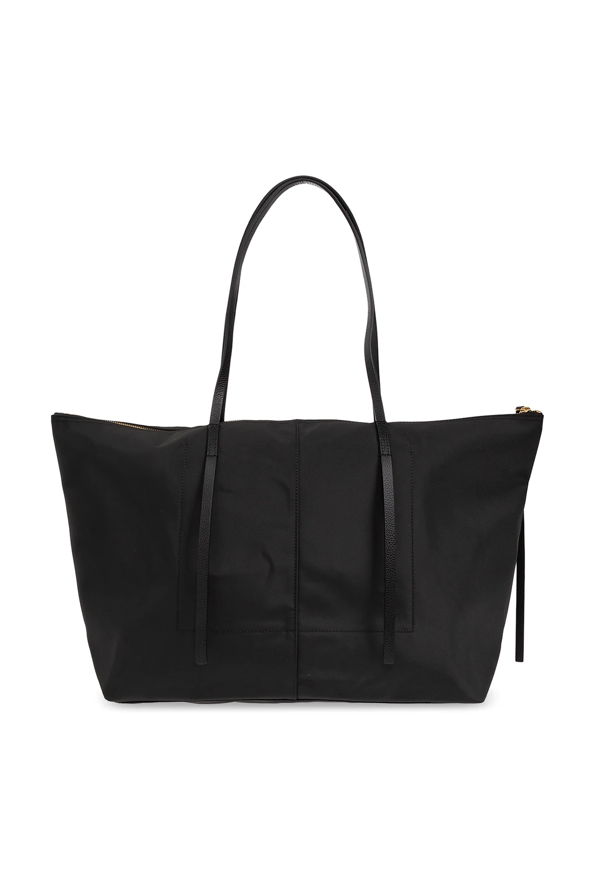 Black ‘Nabelle’ shopper bag from By Malene Birger. Made of recycled material and trimmed with leather, this design fastens via a zip and showcases a logo patch on the front, two half-round handles with fringes, gold-tone metal hardware and one internal compartment with a slip pocket.