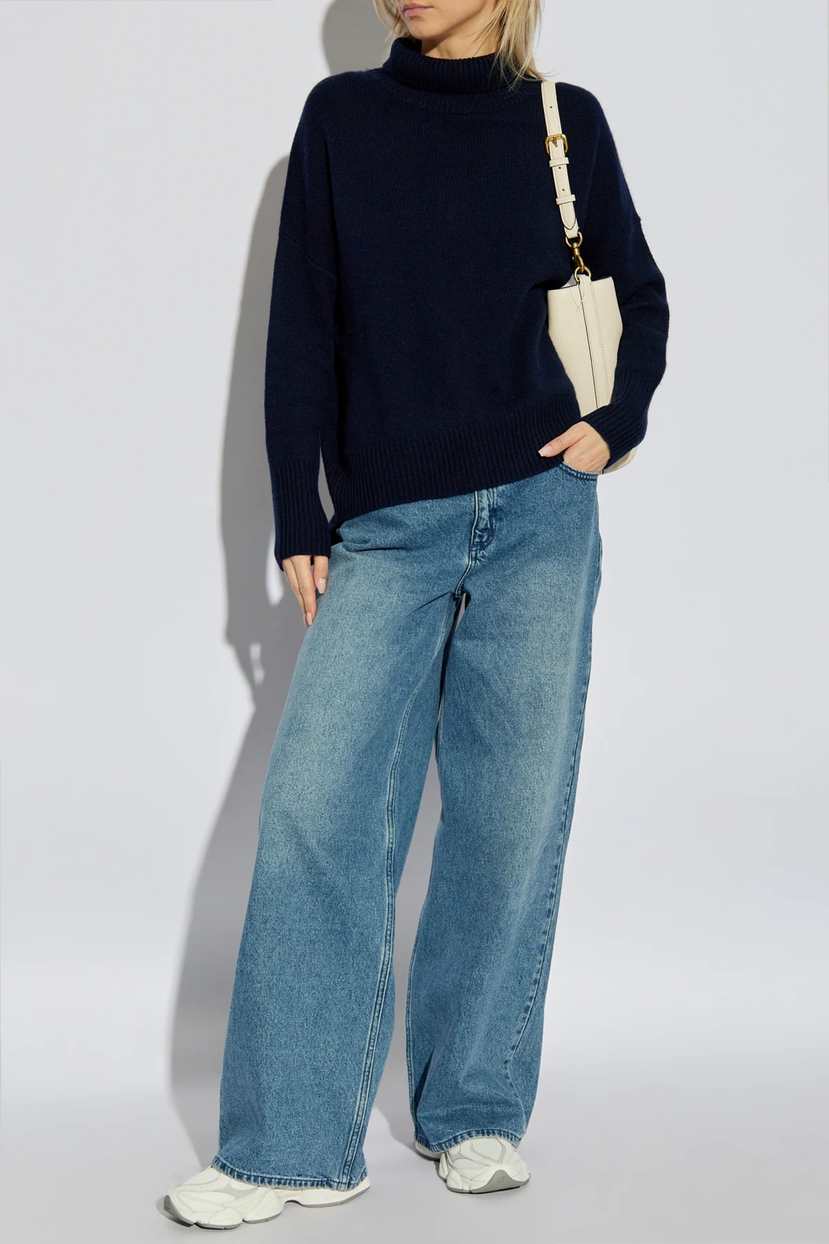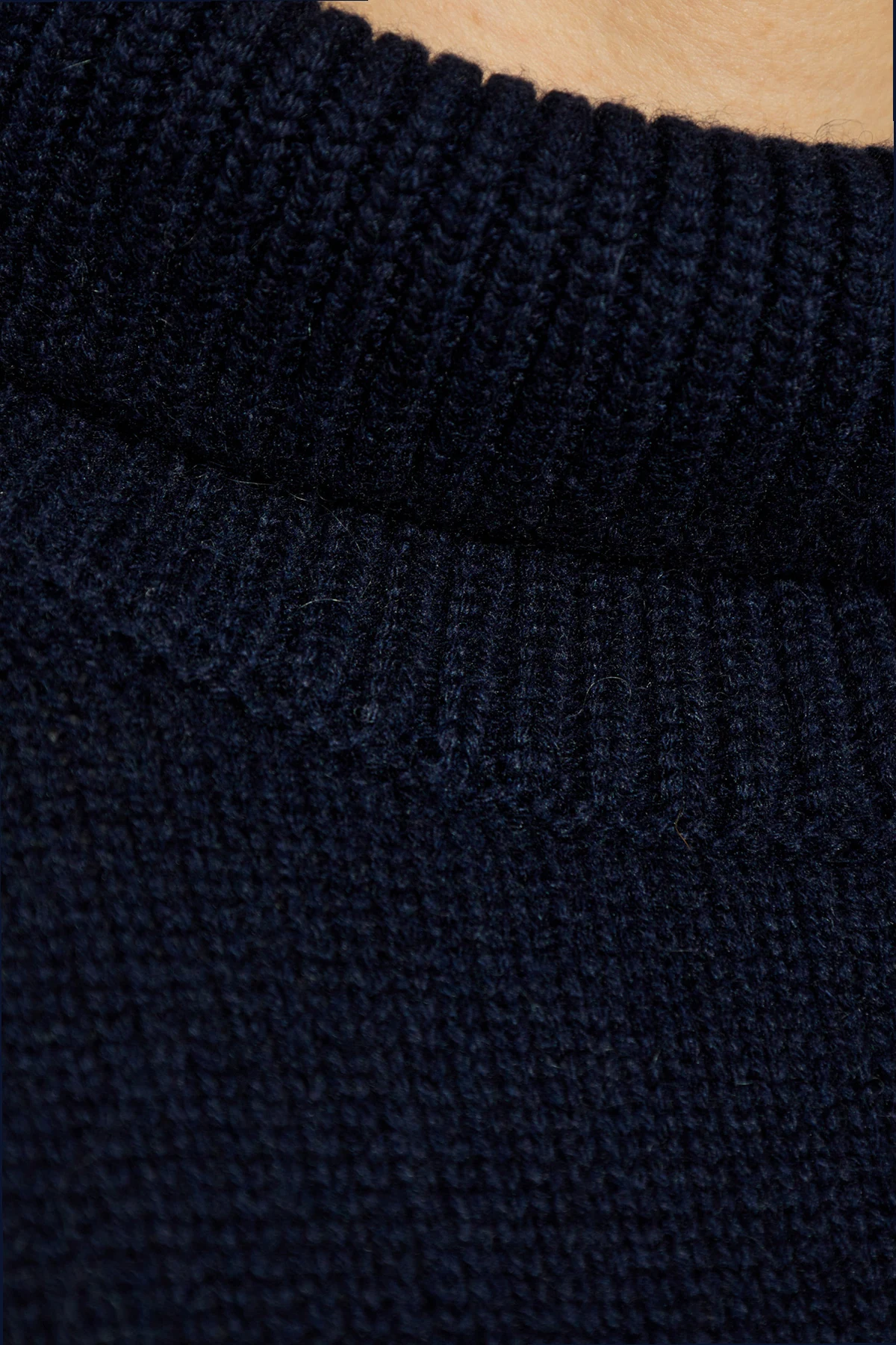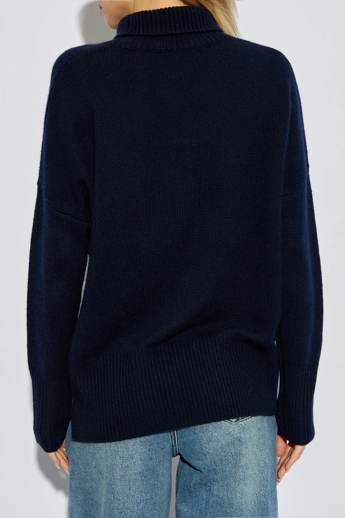 Der Pullover zeichnet sich durch einen lockeren Schnitt aus, der unvergleichliche Bewegungsfreiheit bietet, und sein breiter, gerippter Kragen verleiht dem Look Eleganz und Wärme an kühlen Tagen. Sowohl die Ärmel als auch der Saum sind mit einem breiten, gerippten Bündchen versehen, das den einzigartigen Charakter dieses Designs unterstreicht.