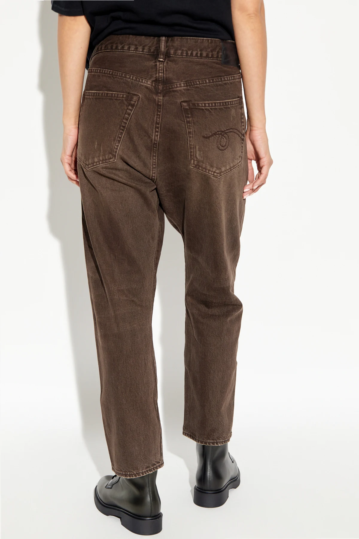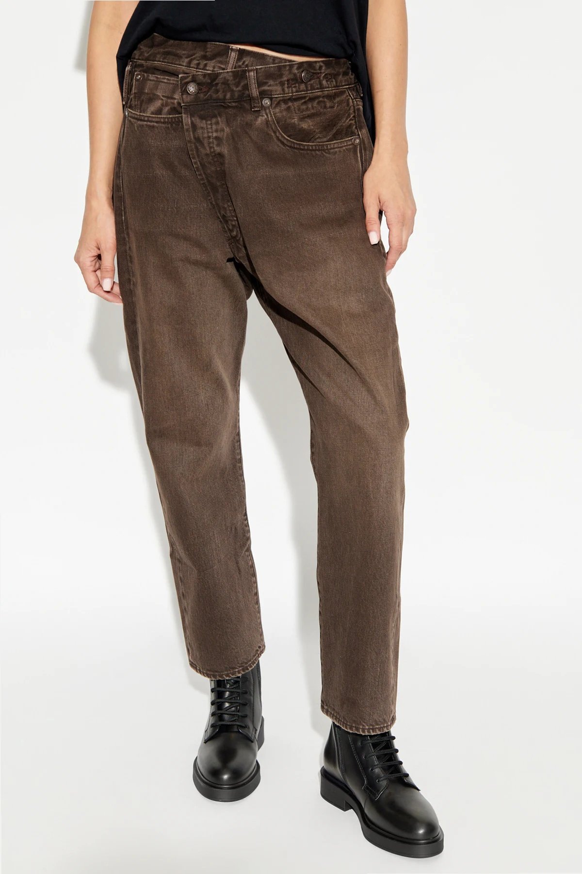 Jeans mit Logo von der exklusiven Marke R13 sind eine unvergleichliche Kombination aus Eleganz und Haltbarkeit. Entworfen von Chris Leba, sind diese braunen Jeans von den 90er Jahren inspiriert und spiegeln den ikonischen Grunge-, Punk- und Rockstil wider.