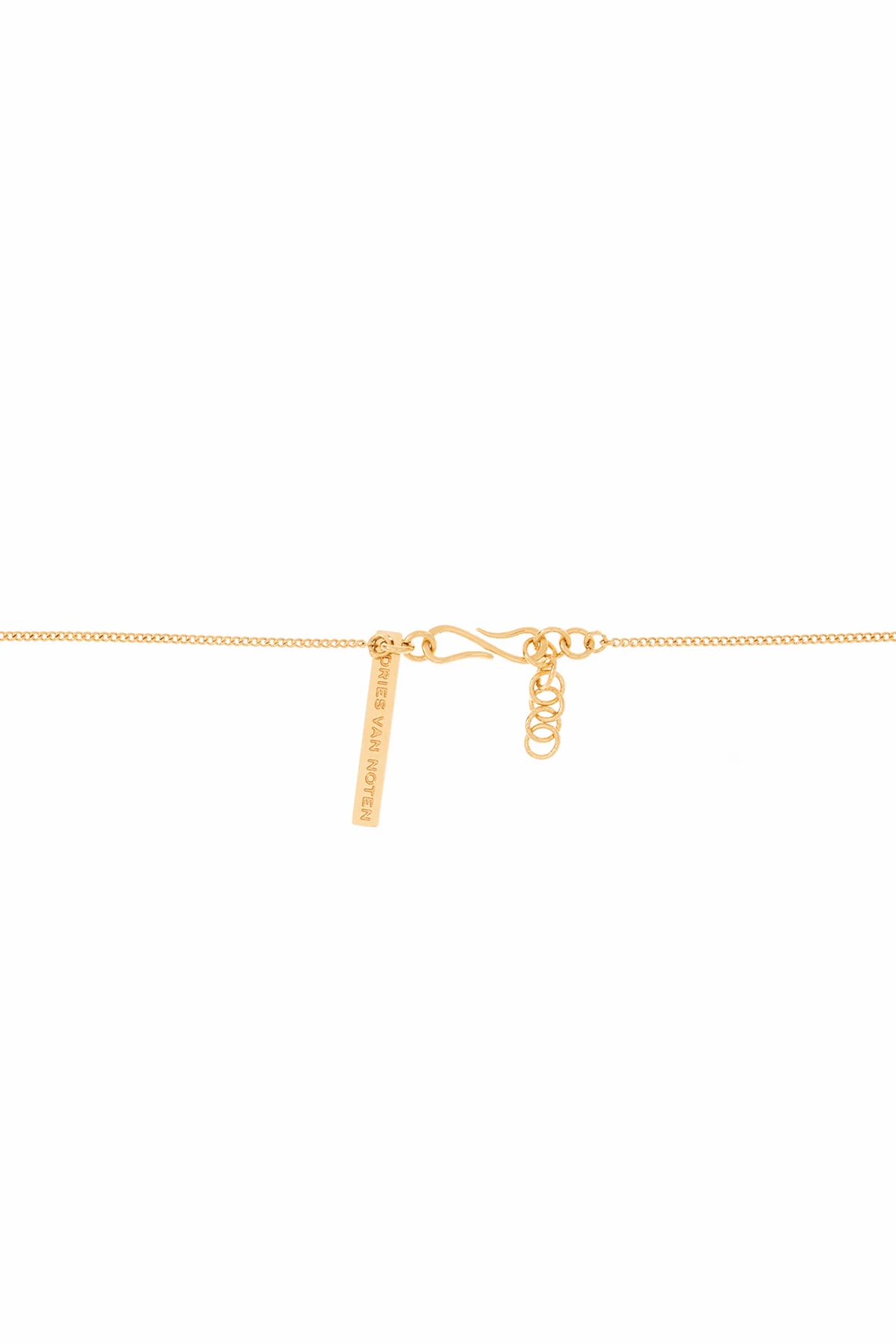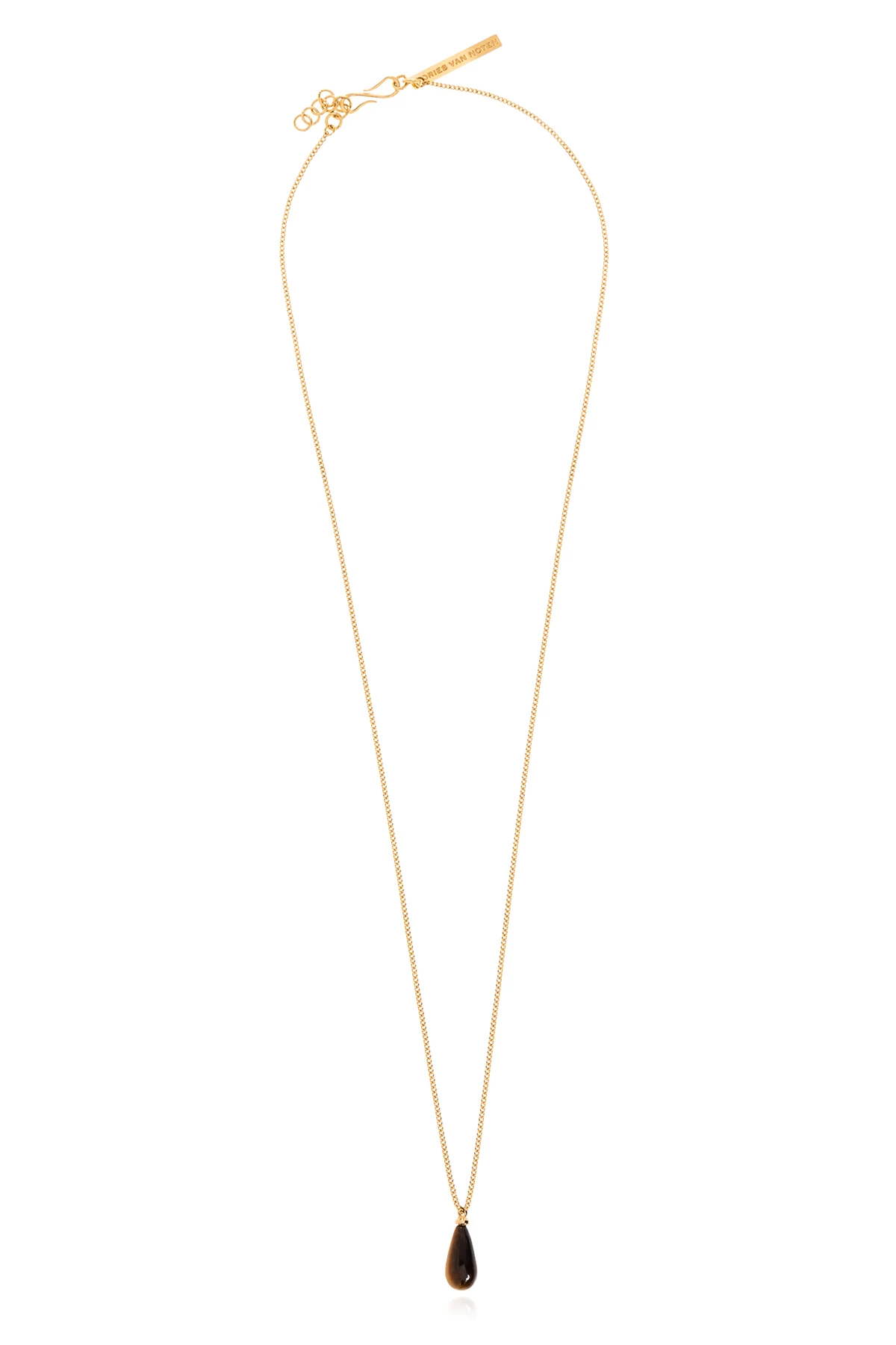 Gold-tone necklace from Dries Van Noten. Made of brass, this item adjusts via a hook closure and features a brown and beige charm made of a semi-precious stone.