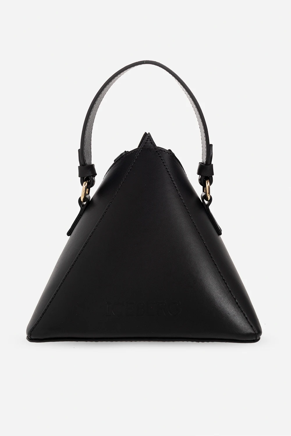 Black shoulder bag from Iceberg. Crafted from calf leather, this design features a zip fastening, an embossed logo, a detachable and adjustable shoulder strap, a half-round handle, gold-tone metal hardware and one internal compartment.