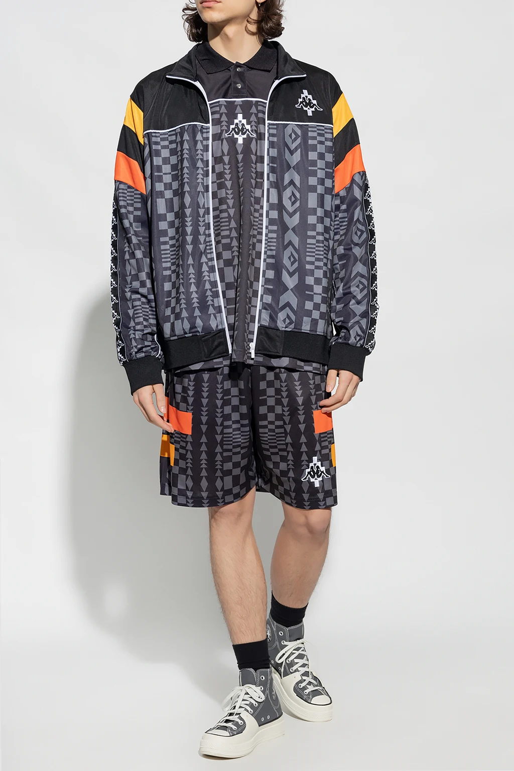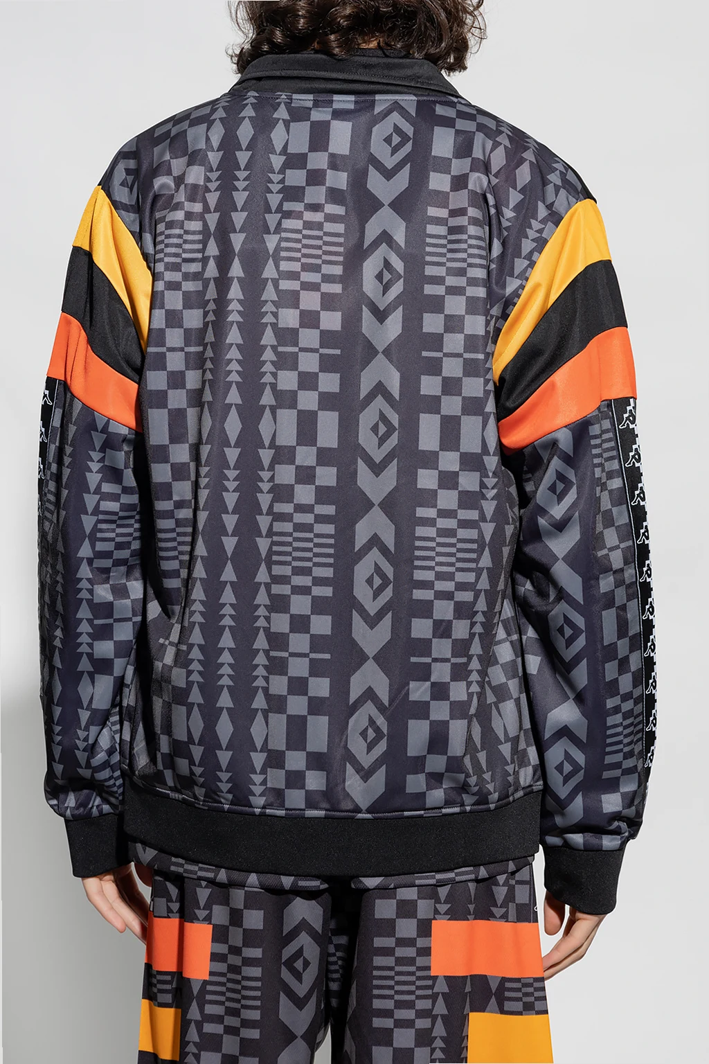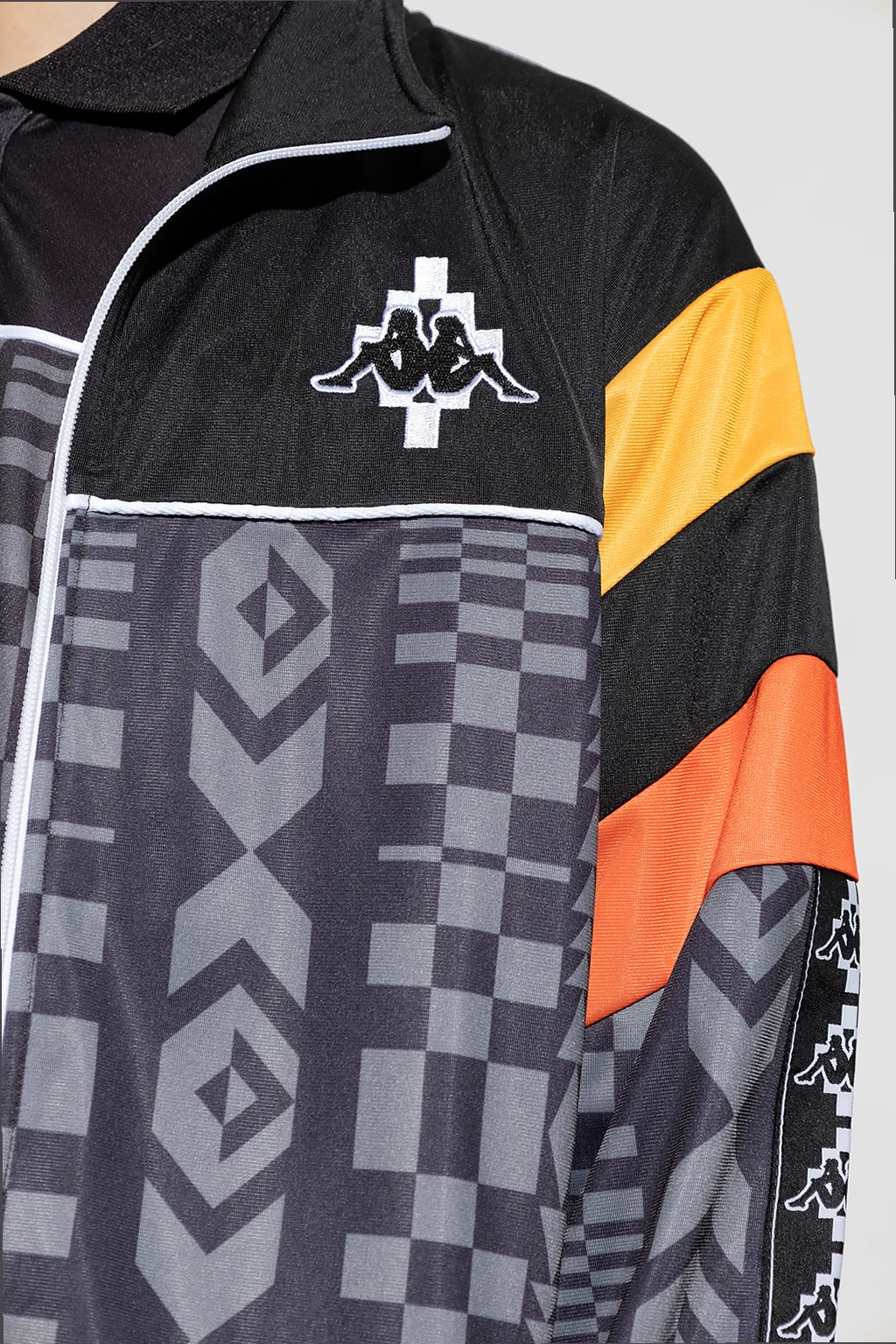 Black and grey sweatshirt from Marcelo Burlon x Kappa. Fastened with a zip, this garment features a logo patch, geometric pattern, two zip pockets and ribbed trims at the hem and cuffs.