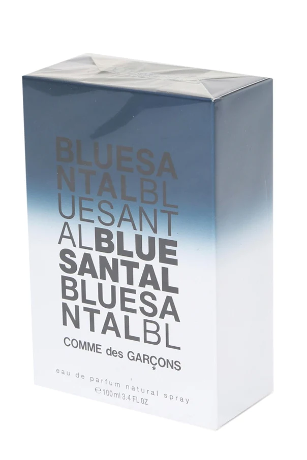 Comme des Garçons 'Blue Santal' eau de parfum. Freezing and cooling Australian sandalwood accompanied by warm pine wood notes and tart juniper berries. Fragrance for women and men includes: mediterranean pine, juniper berry essence, black pepper, Australian sandalwood.