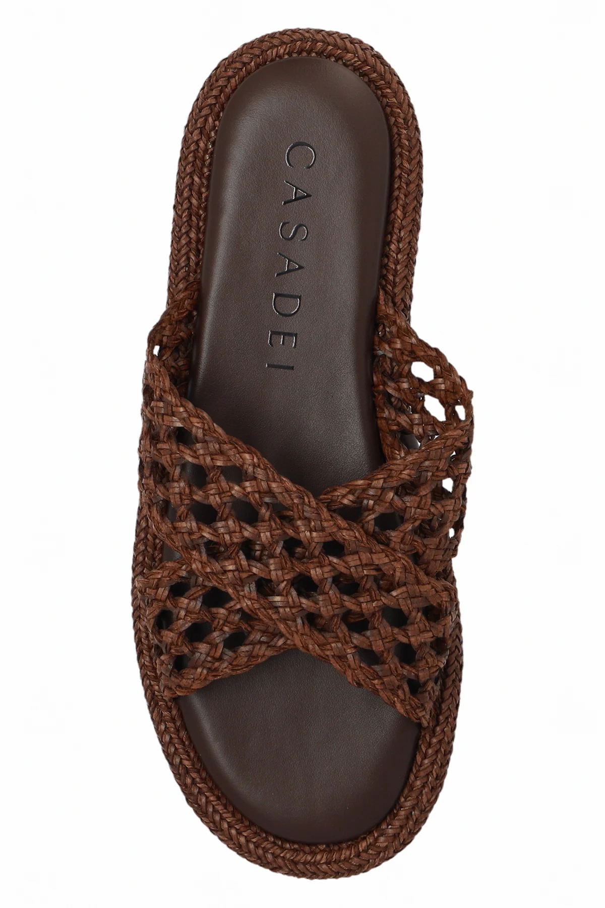 Das Design der 'Dama Lido' Sandalen zeichnet sich durch eine geflochtene Struktur aus, die nicht nur ein Beweis für Handwerkskunst höchster Klasse ist, sondern dem Schuhwerk auch Leichtigkeit und Originalität verleiht. Das subtil auf der Innensohle platzierte CASADEI Logo garantiert Authentizität und Zugehörigkeit zu der exklusiven Kollektion des Designers.