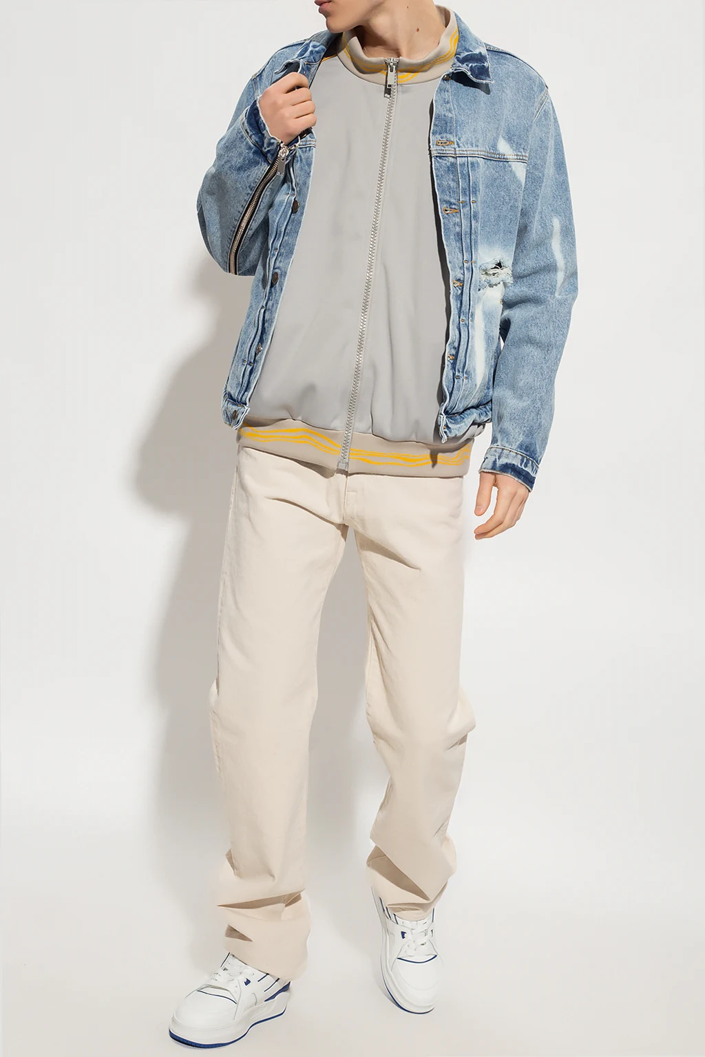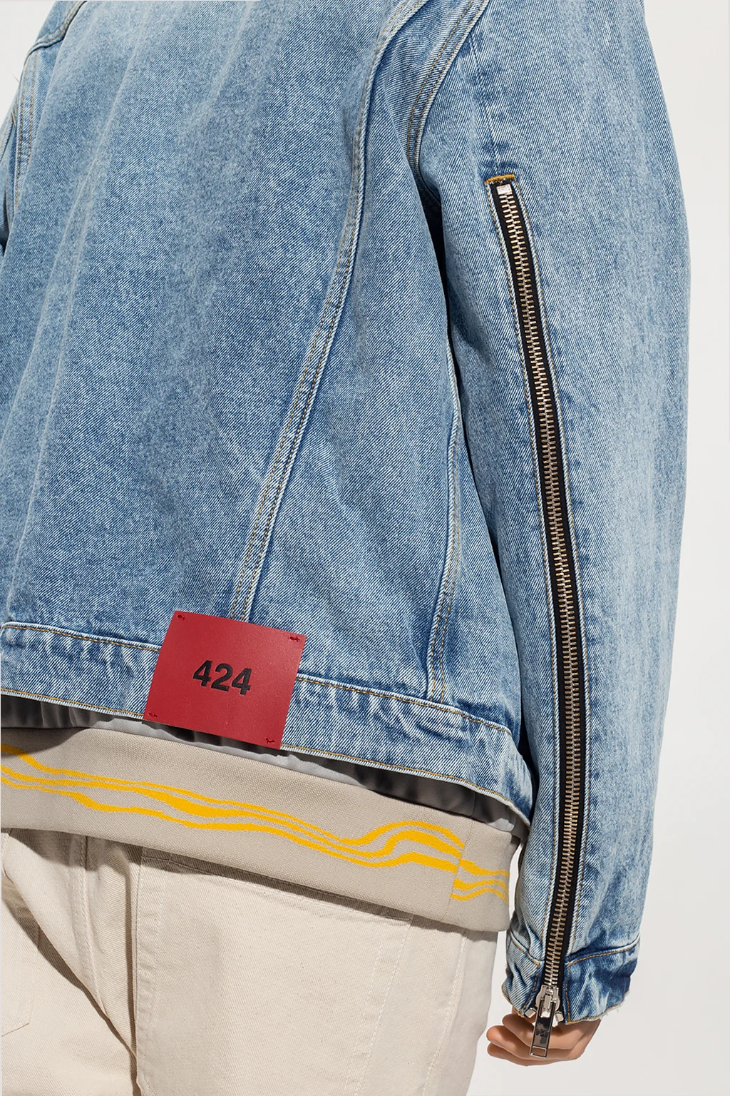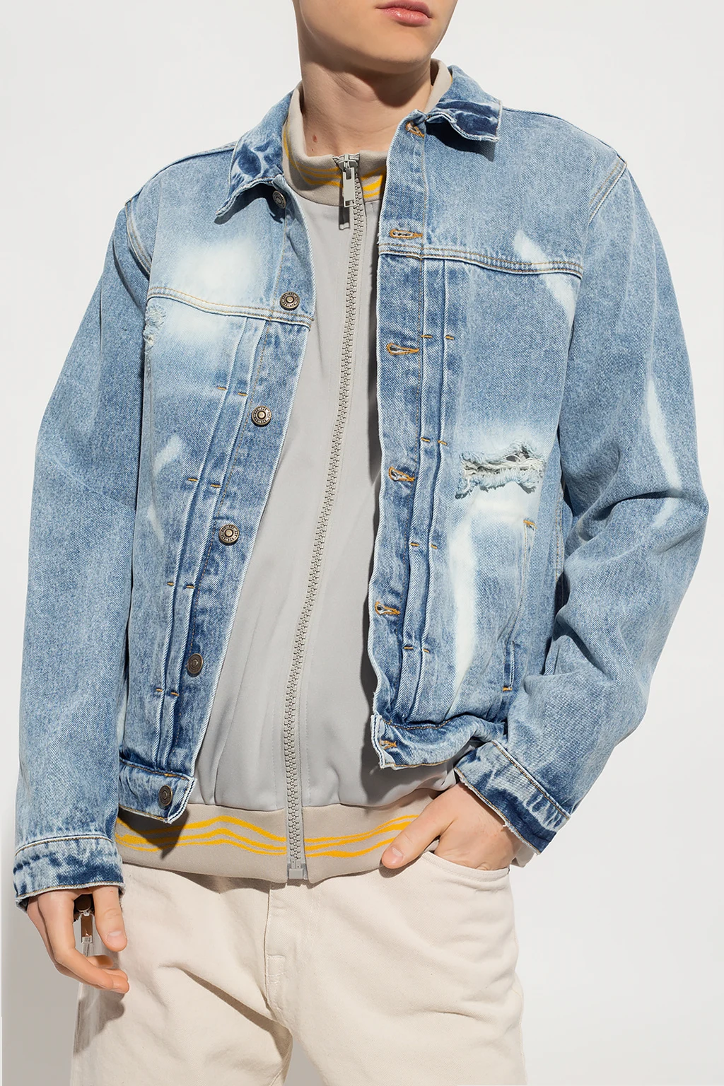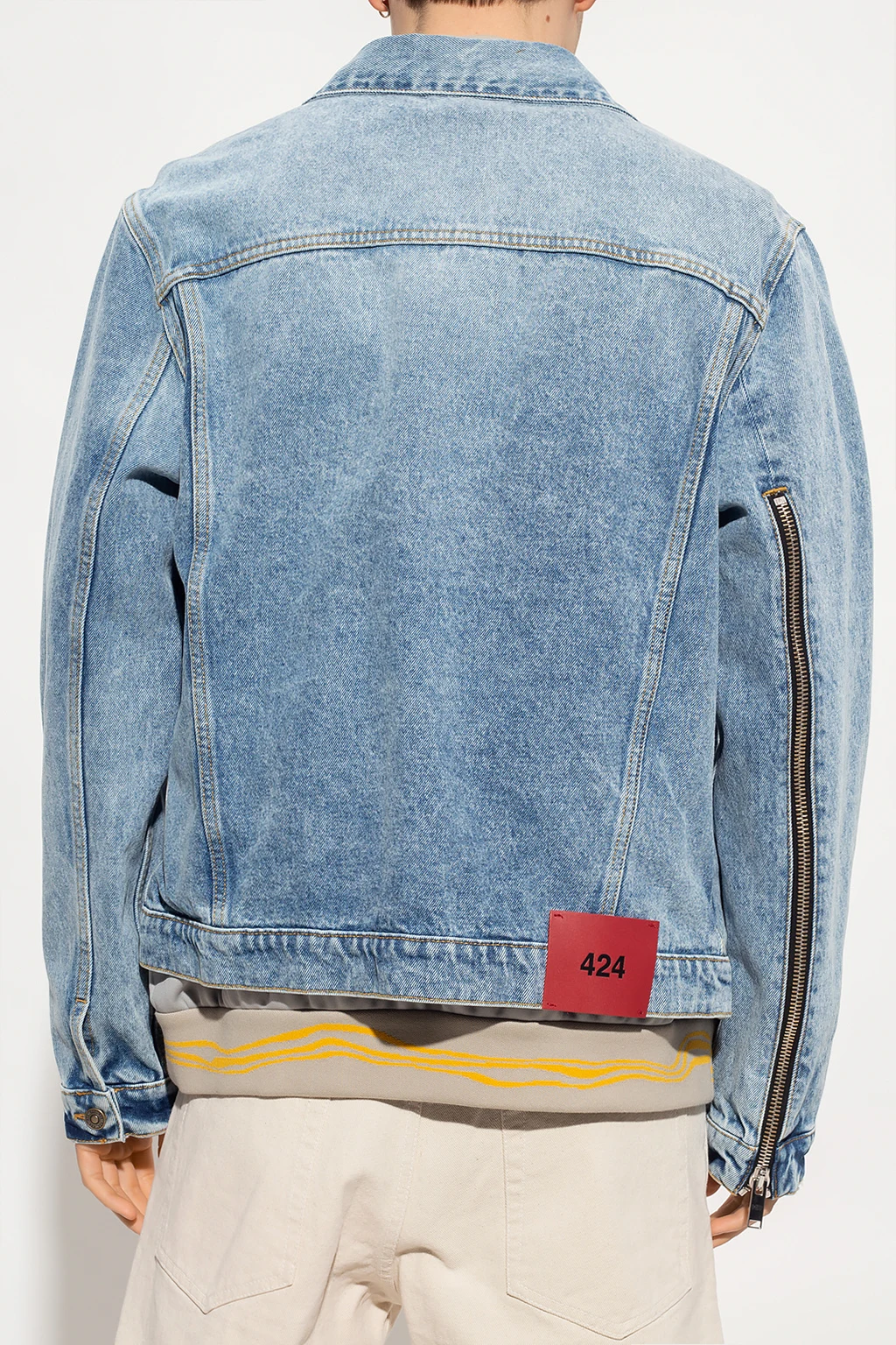 Blue denim jacket from 424. Distinguished by a stonewashed treatment, this style features button fastenings, two frontal pockets, a red logo patch at the back and long sleeves with button cuffs.
