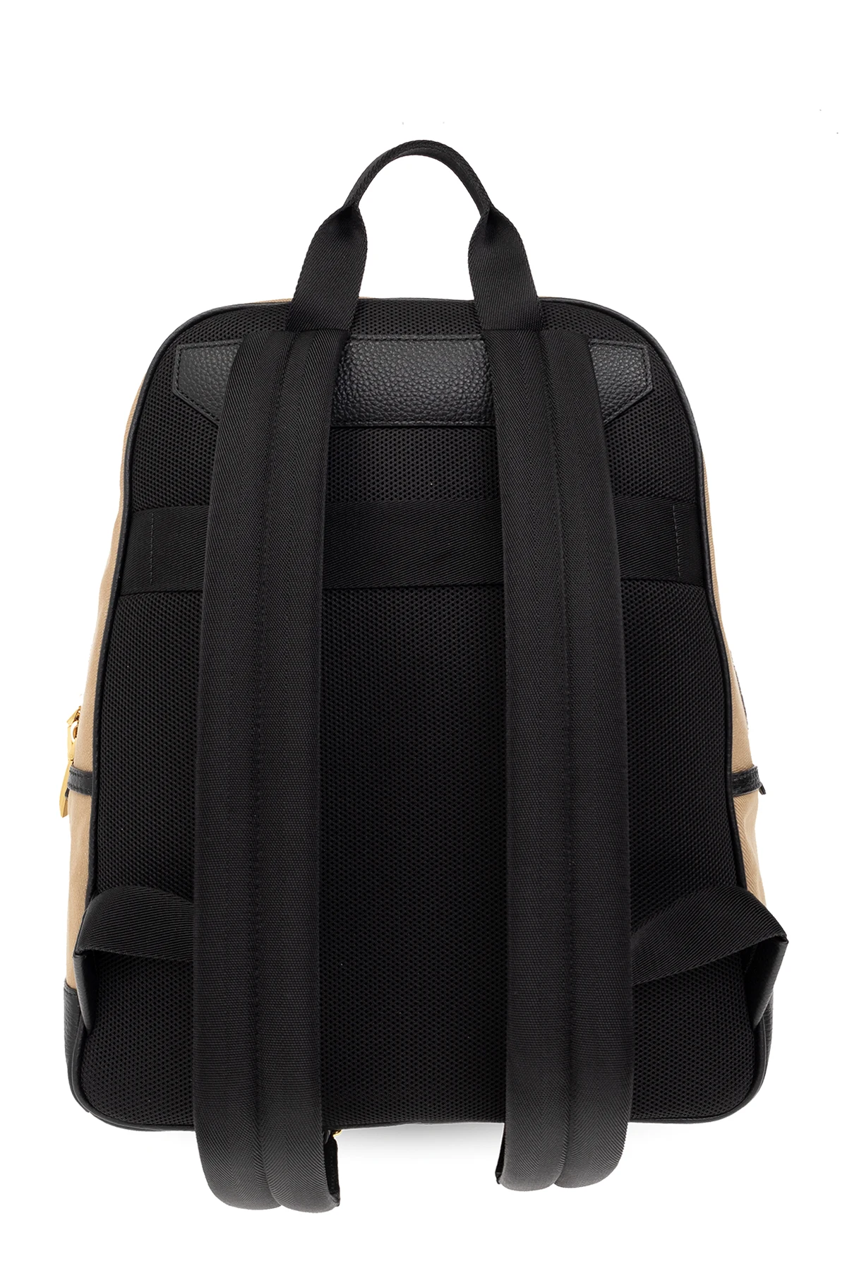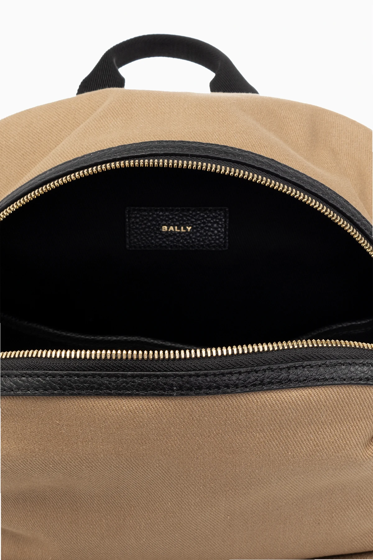 Light brown and black ‘Treck’ backpack from Bally. Made from fabric and trimmed with leather, this design fastens with a two-way zip and showcases a printed black logo. It is complete with a zip front pocket, one top handle, adjustable shoulder straps, gold-tone metal hardware and one internal compartment with one slip pocket and one zip pocket.