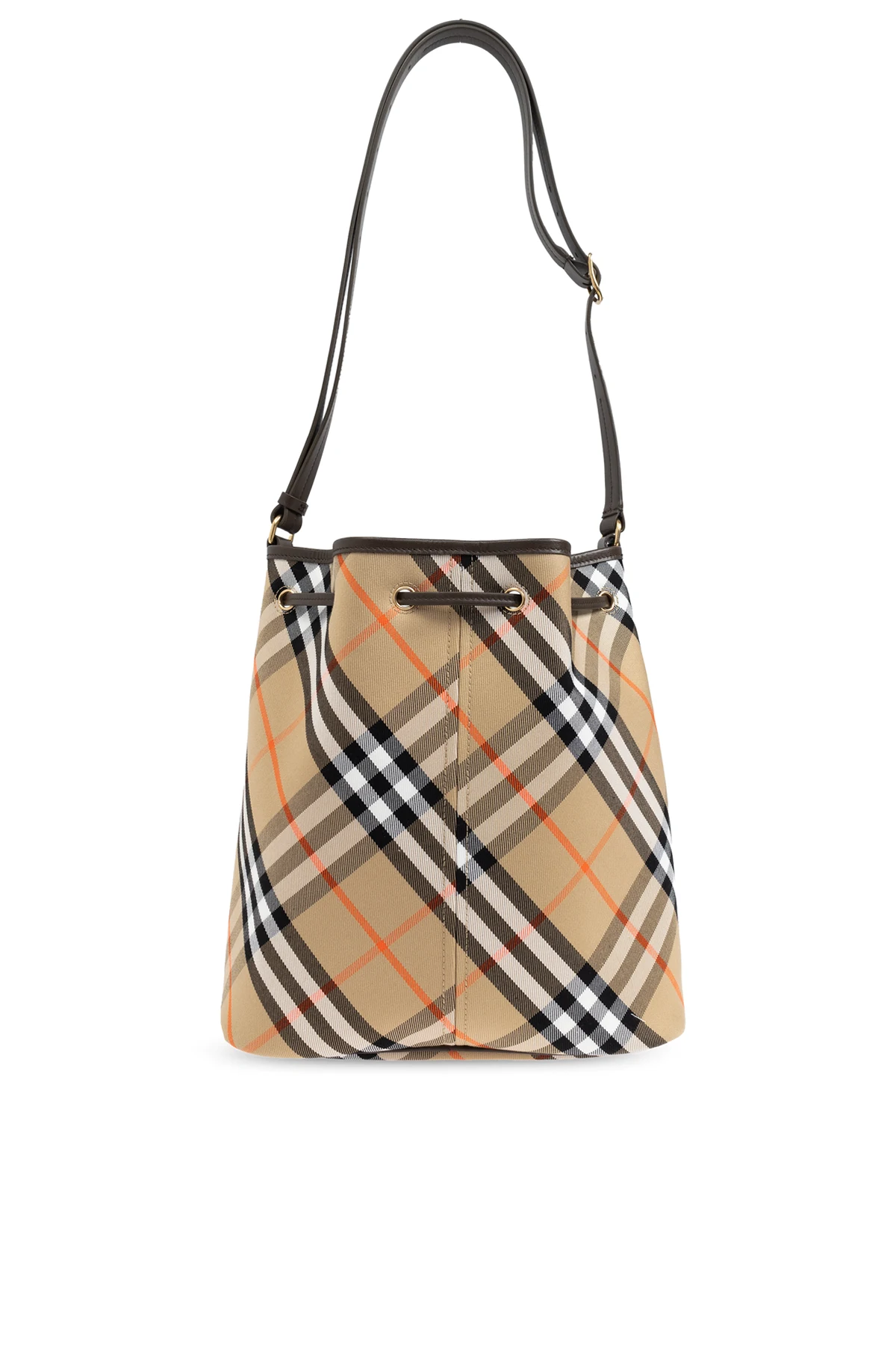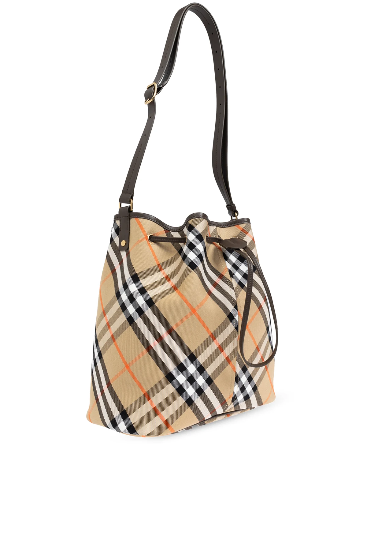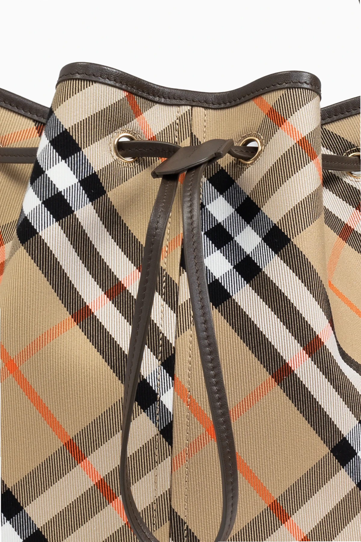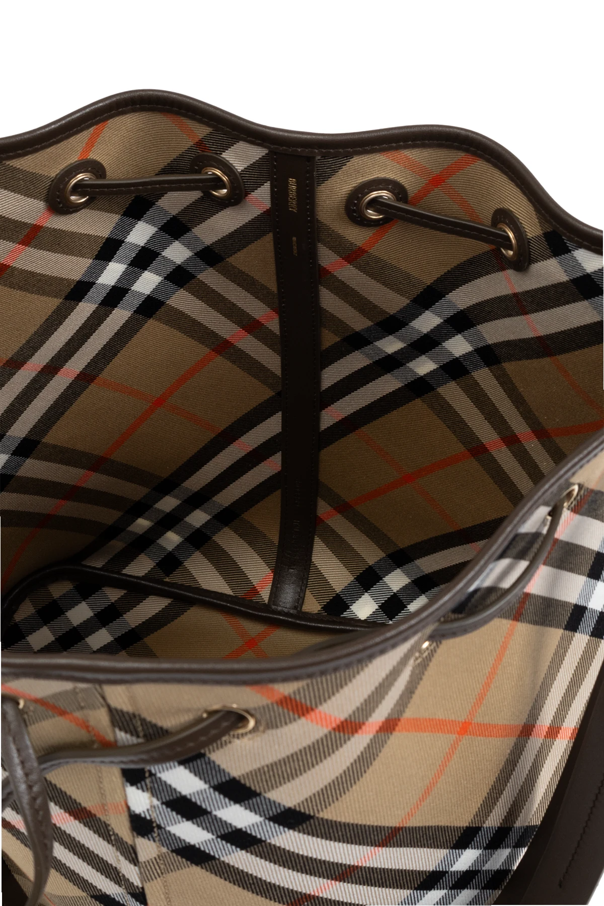 Wir präsentieren Ihnen eine raffinierte Bucket-Tasche vom renommierten Designer Burberry , die das Quintessenz von Eleganz und Funktionalität verkörpert. Gefertigt aus hochwertigster Baumwolle , besticht diese Tasche durch ihr klassisches Karomuster, das durch subtile Akzente in Rot auf einem beigen Hintergrund zum Leuchten gebracht wird. Dieses Muster, das sich auch in der Ausgestaltung des Innenraums wiederfindet, verleiht dem Produkt einen einzigartigen Charakter und Wiedererkennungswert.
