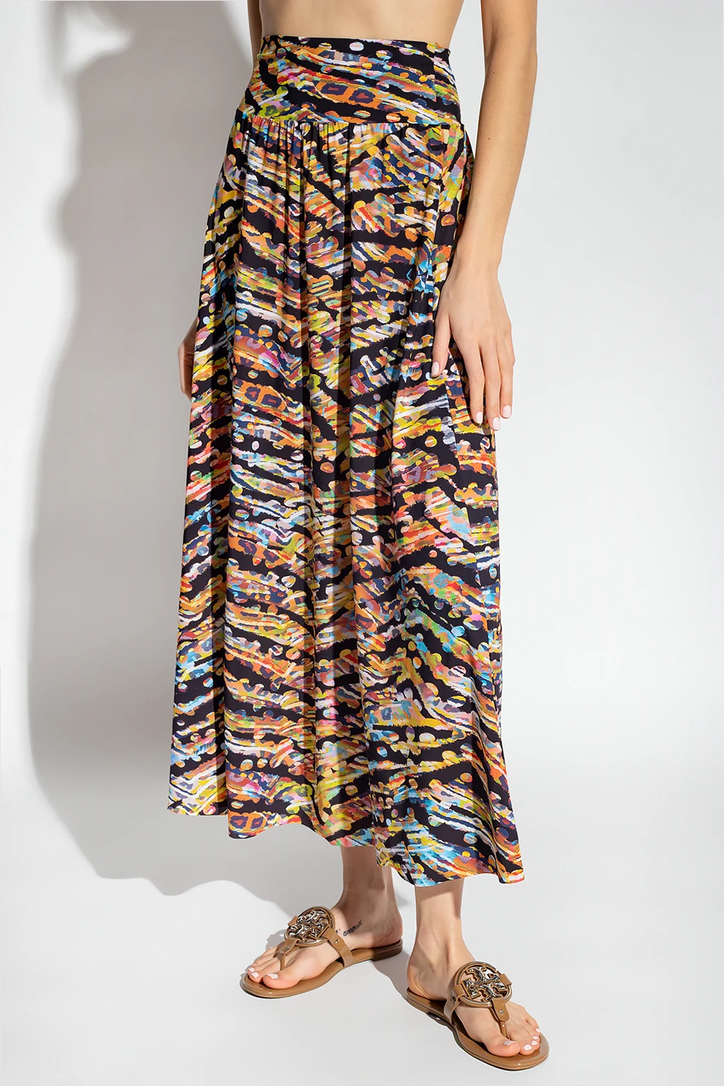 Multicoloured ‘Jaya’ beach dress from Pain de Sucre. With a below-the-knee length, this style features an elasticated waistband.