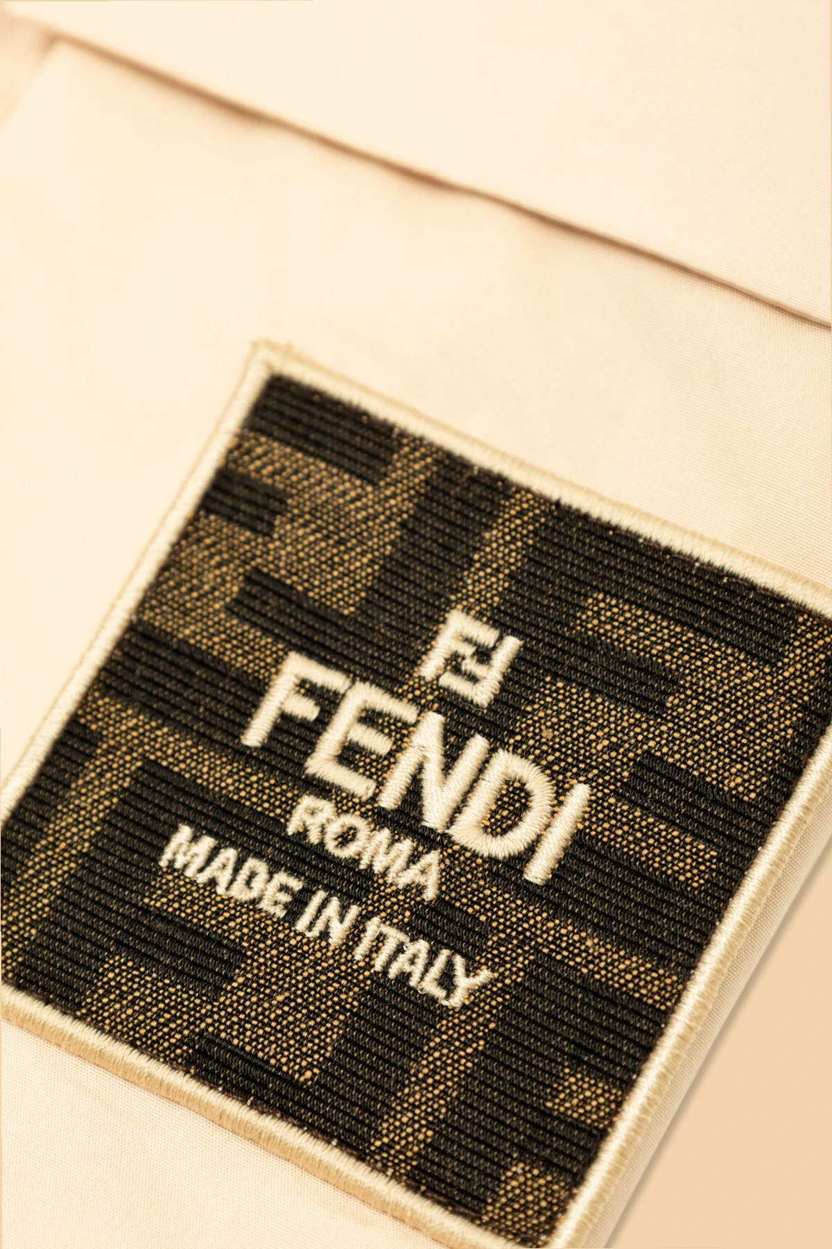 Der lockere Schnitt mit weiten Beinen bietet Bewegungsfreiheit, während der im Bund eingenähte elastische Gummi eine perfekte Anpassung an die Figur ermöglicht. Ein praktisches Detail ist die große, aufgenähte Tasche am Bein, die nicht nur die Funktionalität der Hose erhöht, sondern sich auch in die neuesten Trends einfügt. Ein besonderes Detail, das den luxuriösen Charakter des Produktes unterstreicht, ist das Fendi -Logoetikett in prestigeträchtigen Farben – goldener Text auf schwarzem Hintergrund, angebracht an der Tasche, das die italienischen Wurzeln und die Exklusivität der Marke bezeugt.