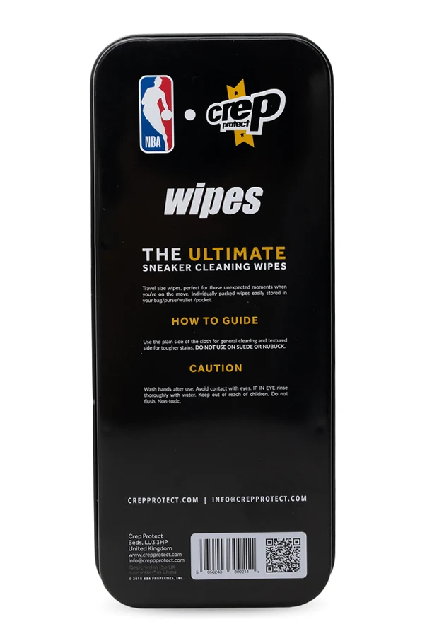 Travel kit from Crep Protect. Consists of a metal box with twelve separately packaged wipes. Crep Protect Wipes are double sided – a rough side for tough stains and a soft side for general cleaning.