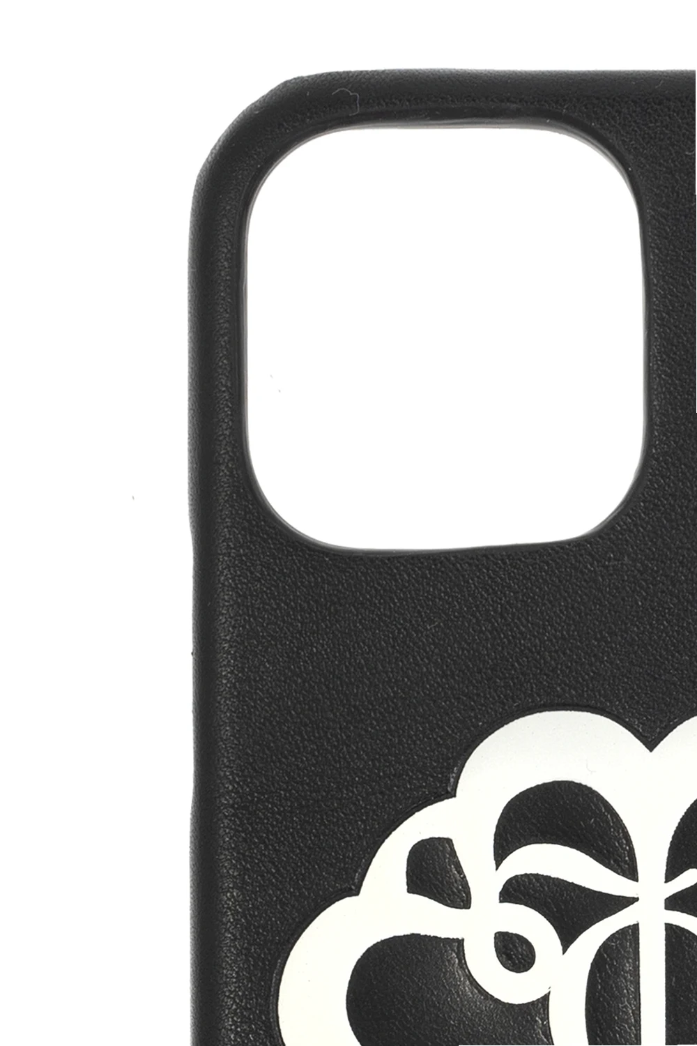 Black iPhone 12 Pro case from Alexander McQueen. Enriched by a white tactile logo, this item features silver-tone metal hardware, including chain detailing.