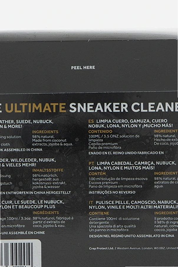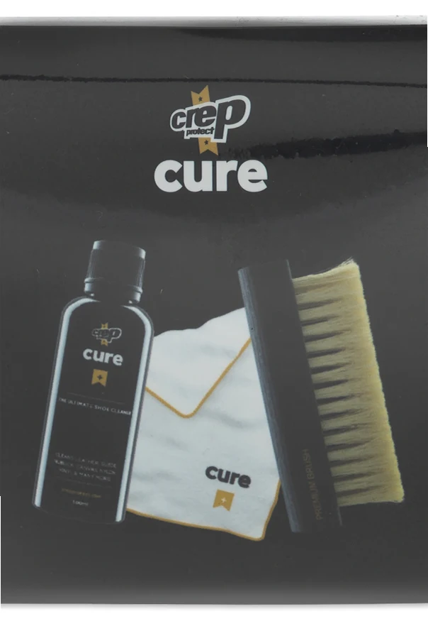 Shoe cleaning kit from Crep. Includes a brush, microfiber cloth and cleaning solution.