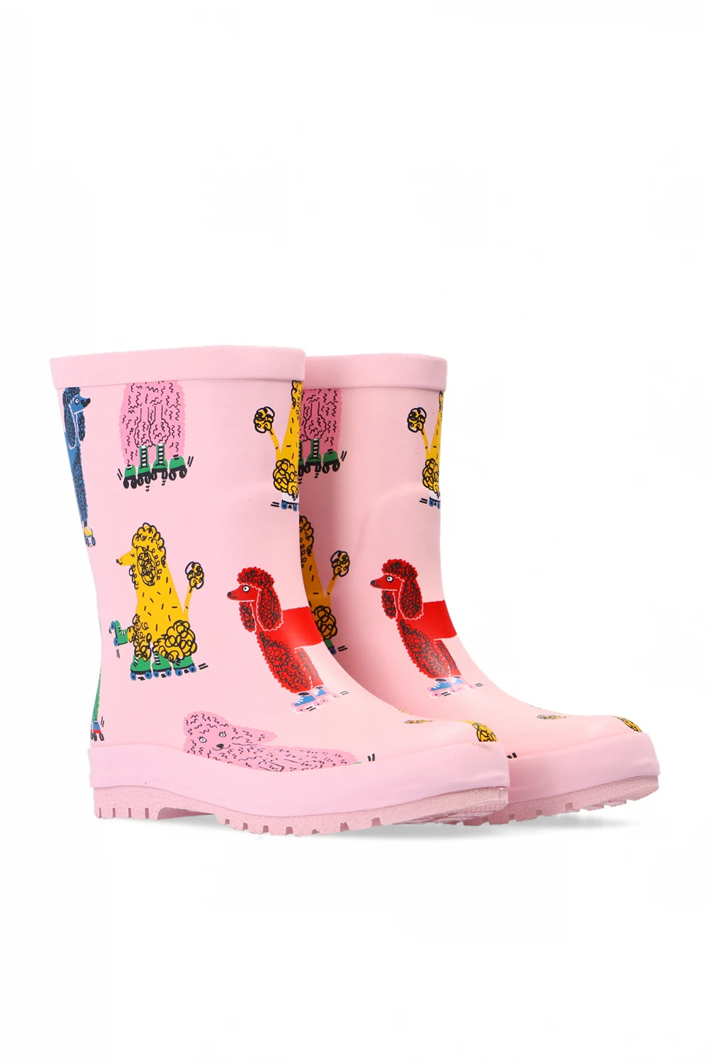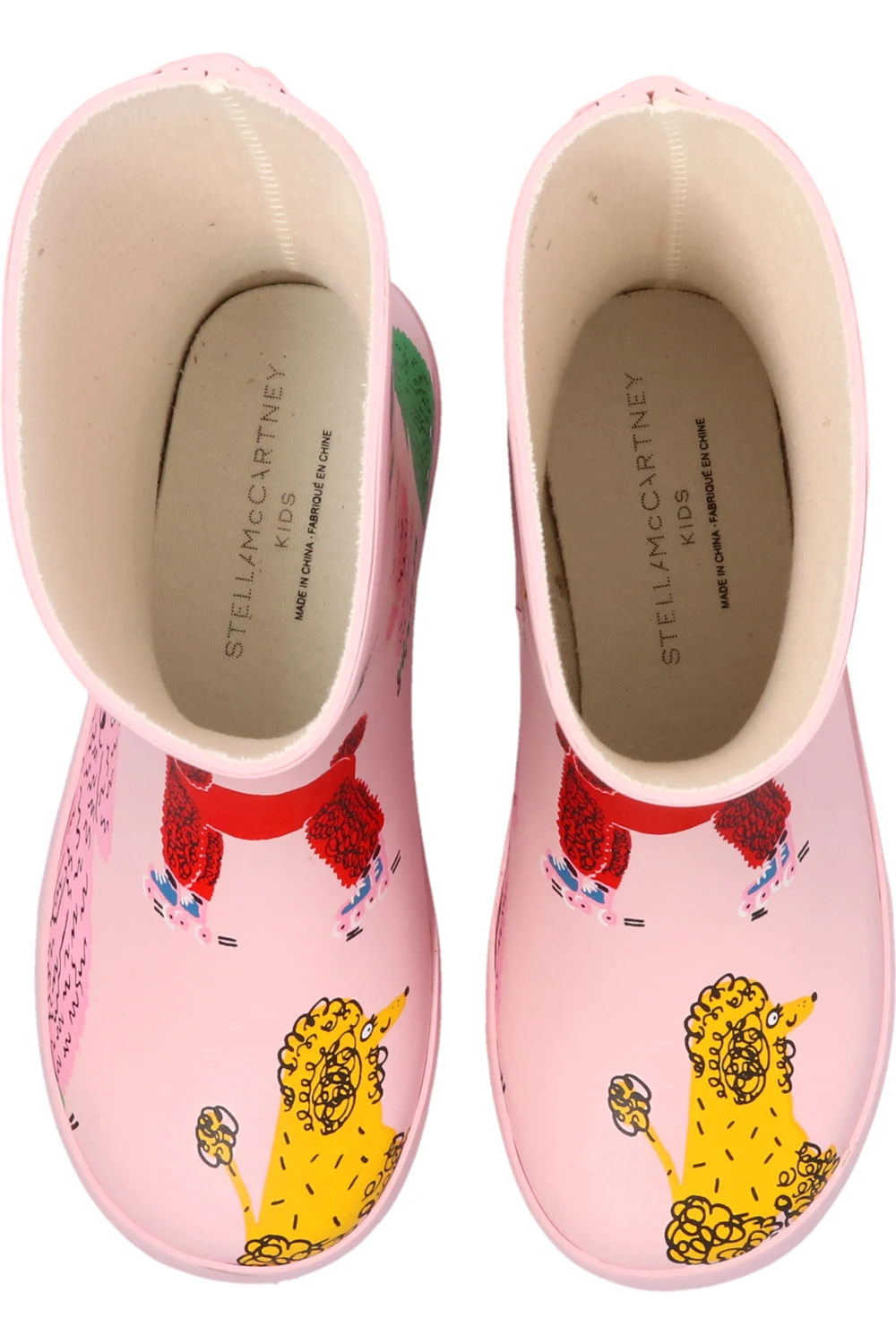 Pink rain boots with a multicolored print from Stella McCartney Kids. Made of rubber.