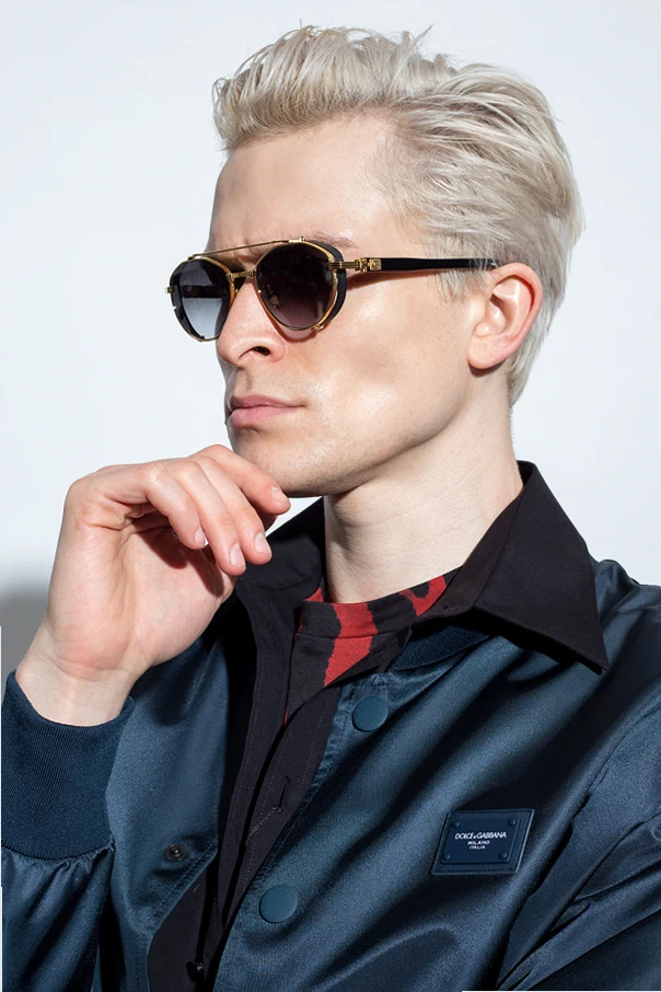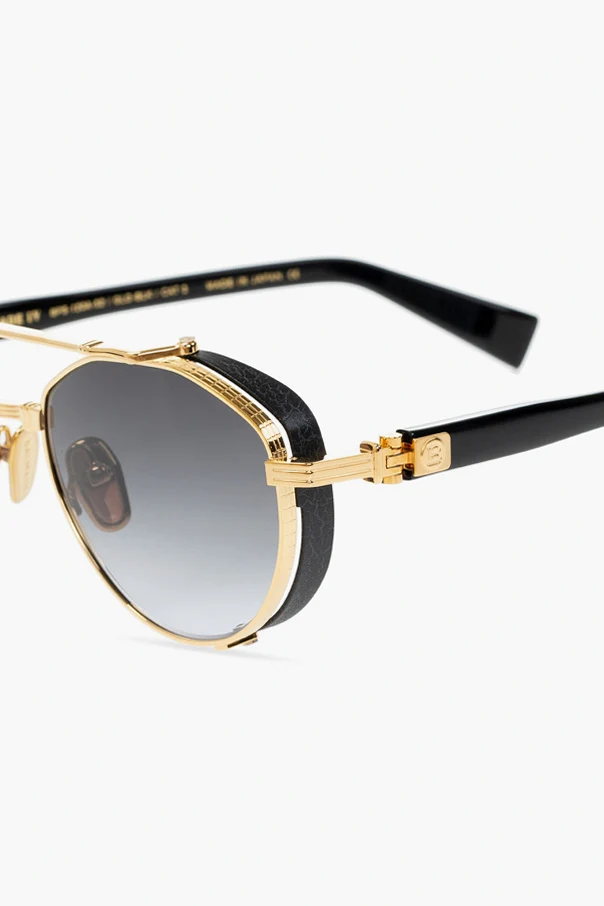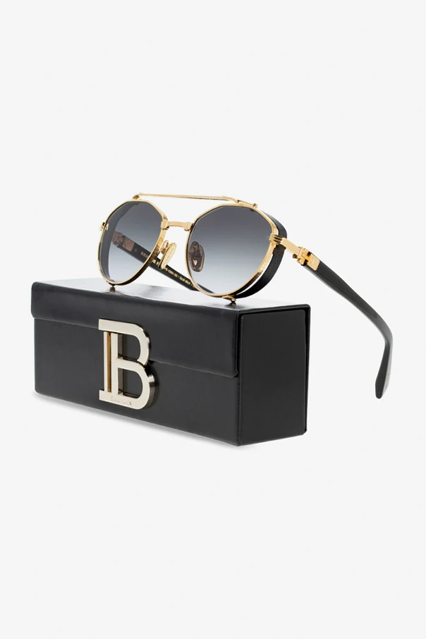 Gold-tone and black sunglasses from Balmain. Enriched by logo detailing, this pair features certified black and purple lenses with 100% UVA/UVB and UVC protection. Comes with a silver-tone branded leather case.