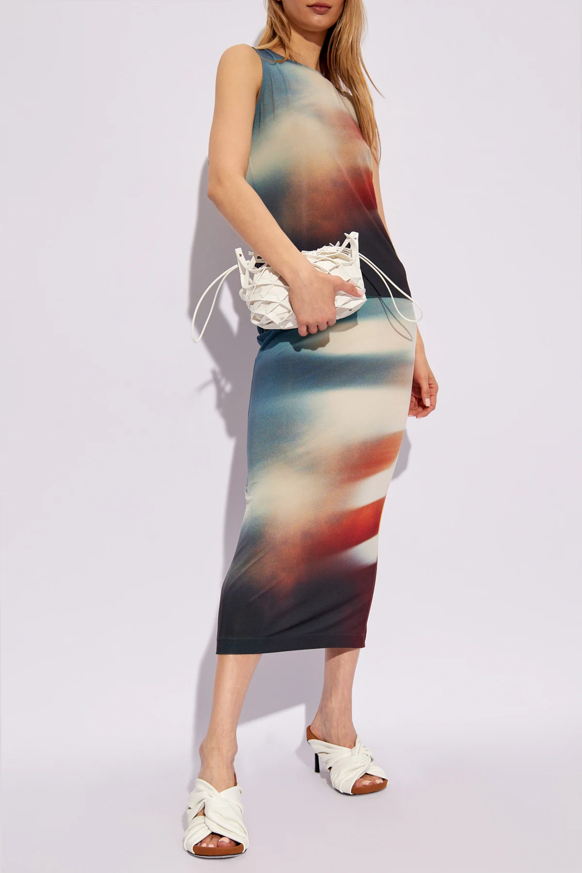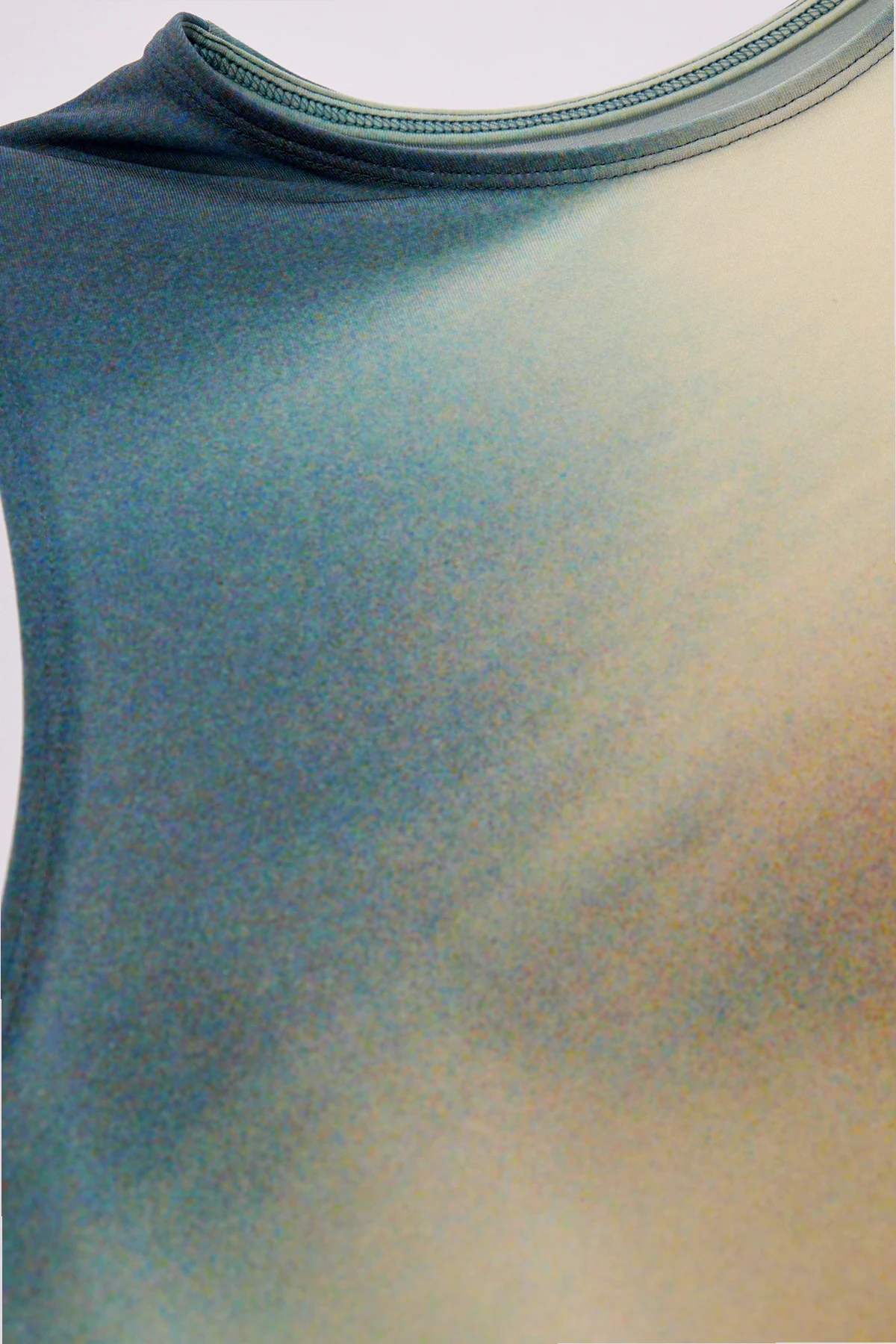 Das Design zeichnet sich durch ein multifarbenes, abstraktes Muster aus, das an einen Farbverlaufseffekt erinnert, mit dominierenden Blau-, Rot- und Schwarznuancen. Ein solches Muster verleiht dem Top einen dynamischen und frischen Charakter und macht es zu einer idealen Wahl für vielfältige Anlässe.