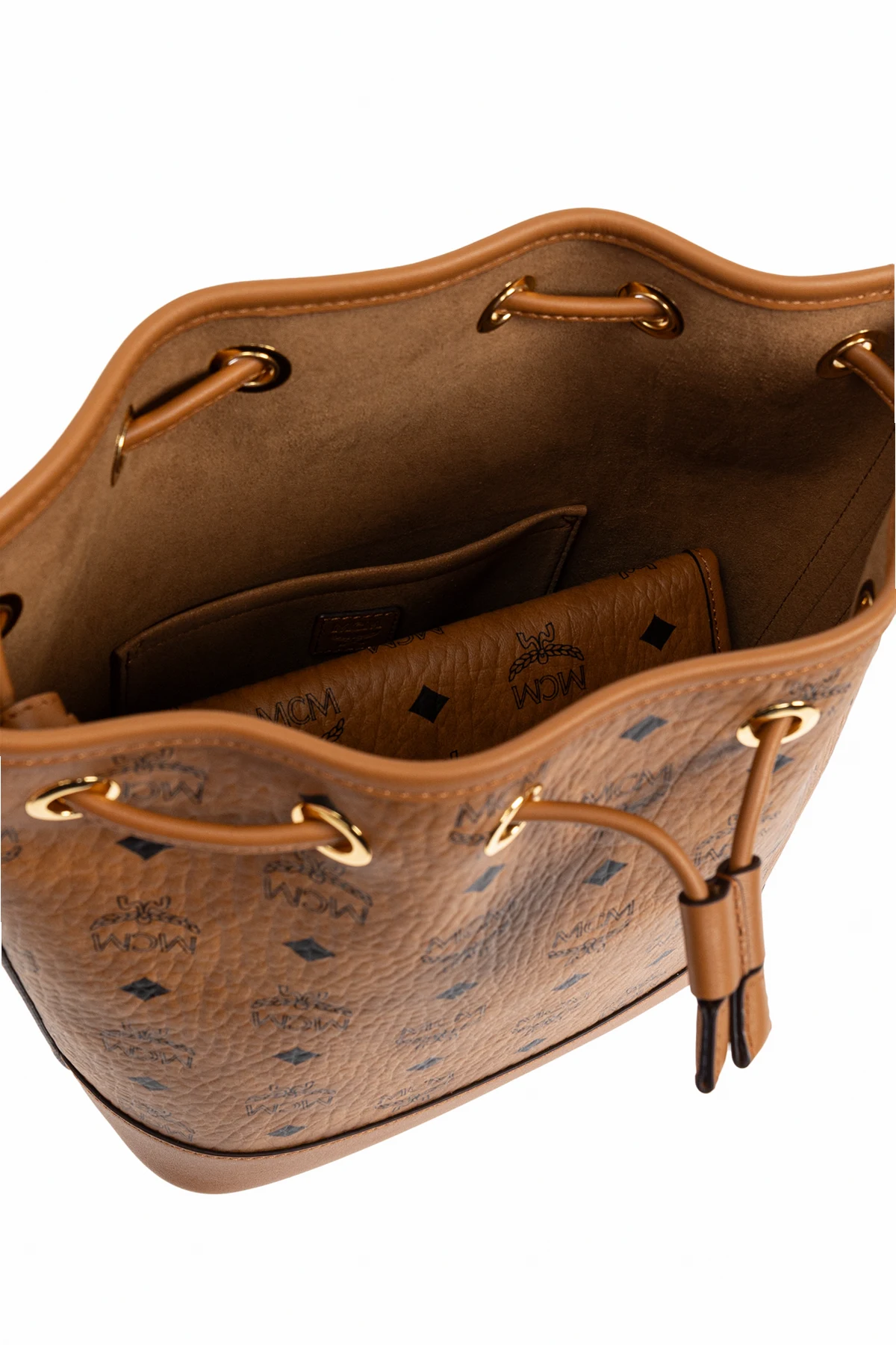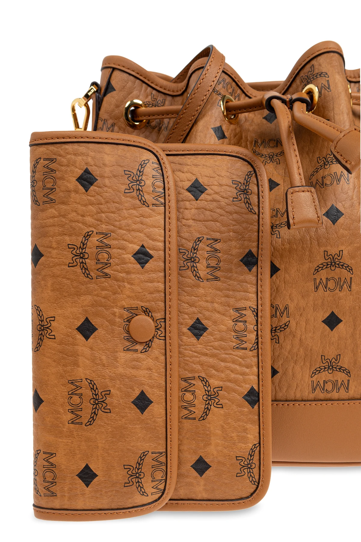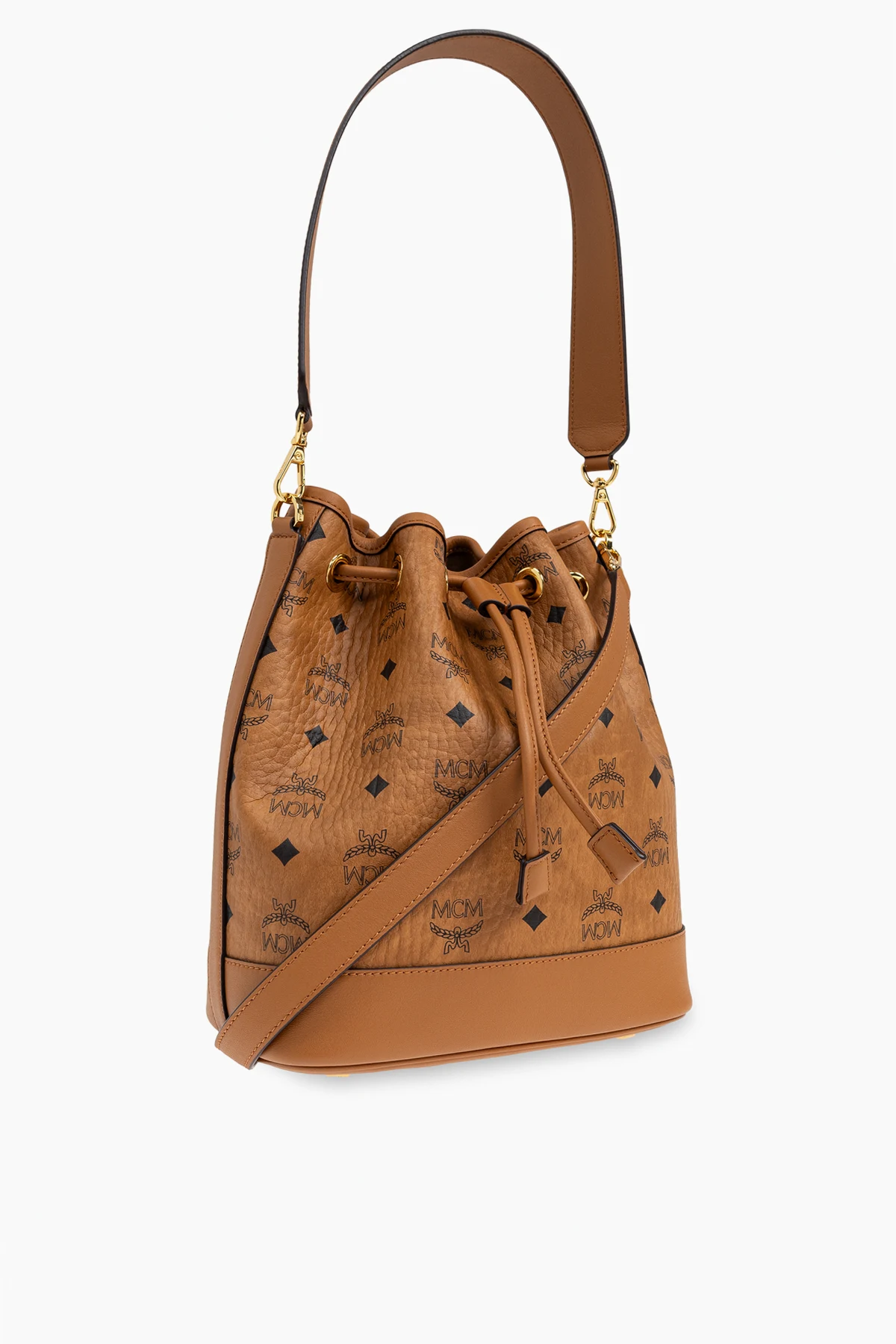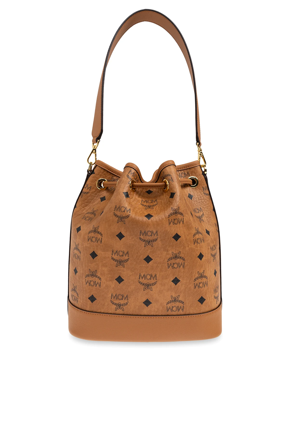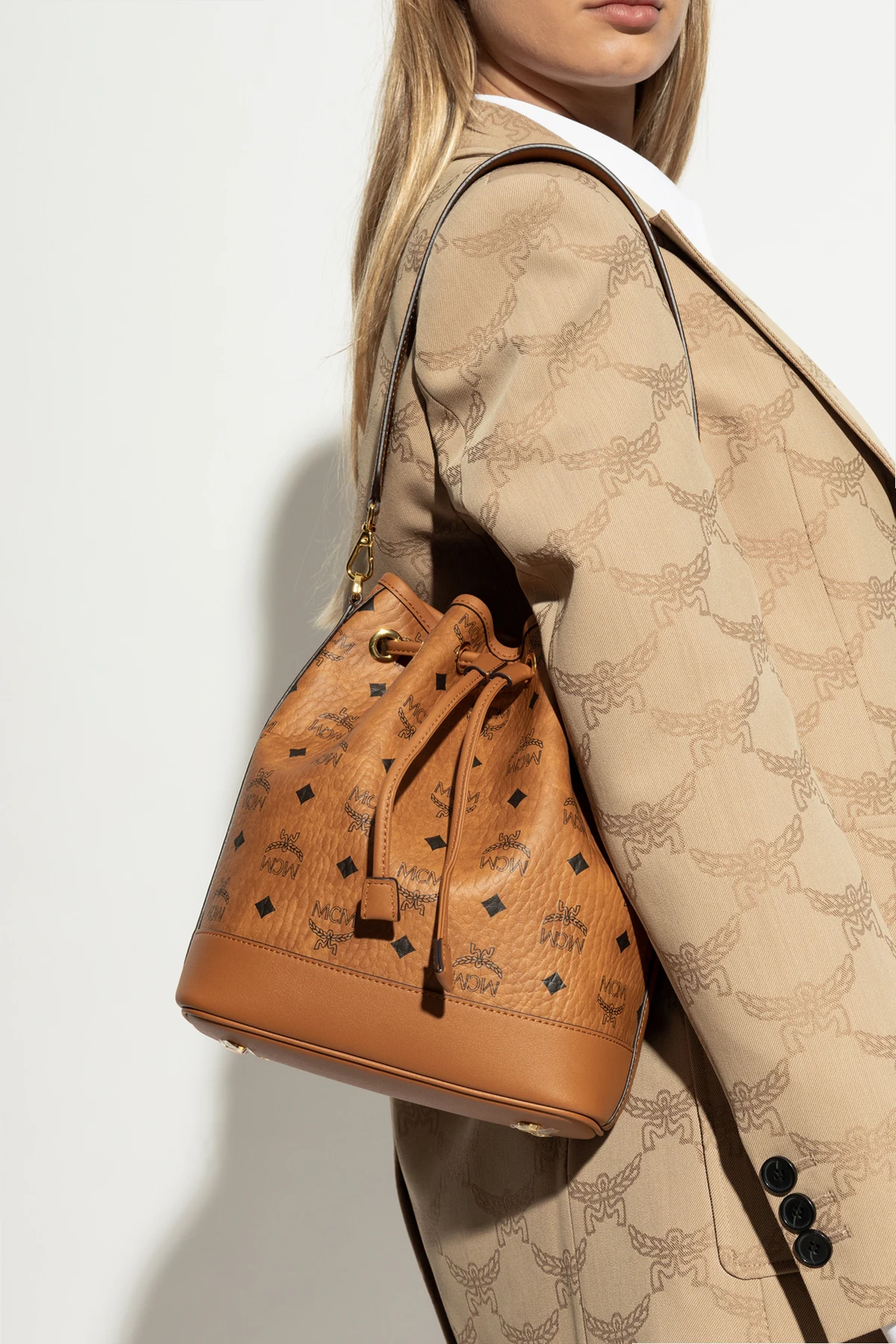 Wir präsentieren die Schultertasche "Dessau" im Bucket-Stil aus der raffinierten Kollektion der Marke MCM, die ein Synonym für Luxus und Eleganz ist. Gefertigt aus hochwertigem braunem Leder, vereint sie harmonisch klassisches Design mit modernem Stil. Der charakteristische "Visetos"-Druck und die Diamantmotive unterstreichen das Renommee der Marke, während goldene Beschläge einen subtilen Glanz hinzufügen.
