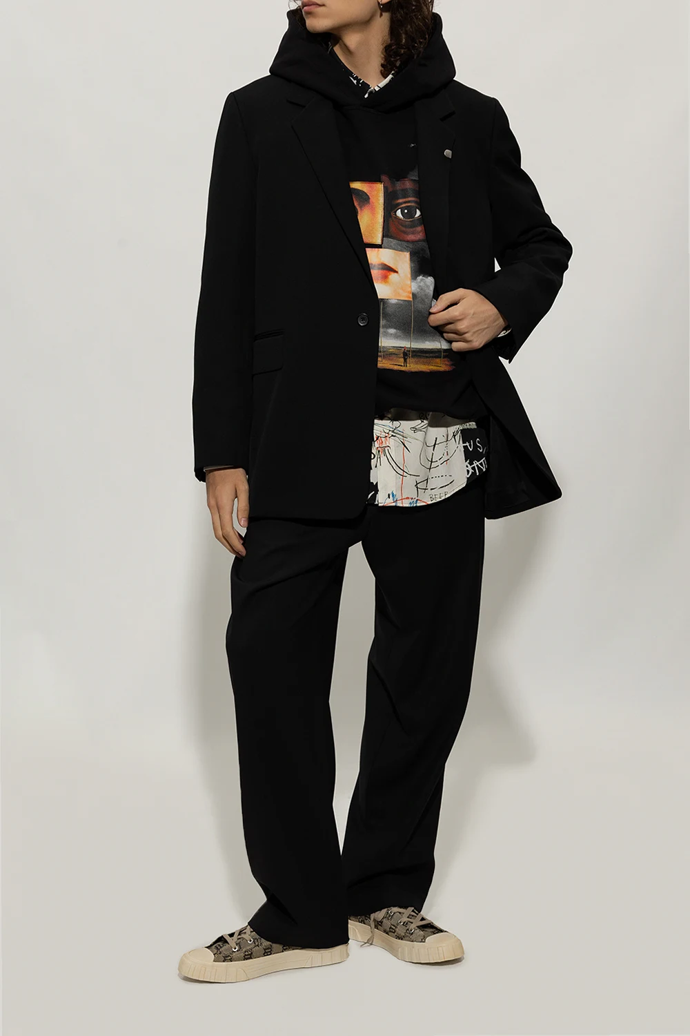 Beige and grey ‘Army High’ high-top sneakers from MISBHV. Made of canvas with a jacquard monogram pattern, this lace-up pair features a logo patch and cream rubber sole.