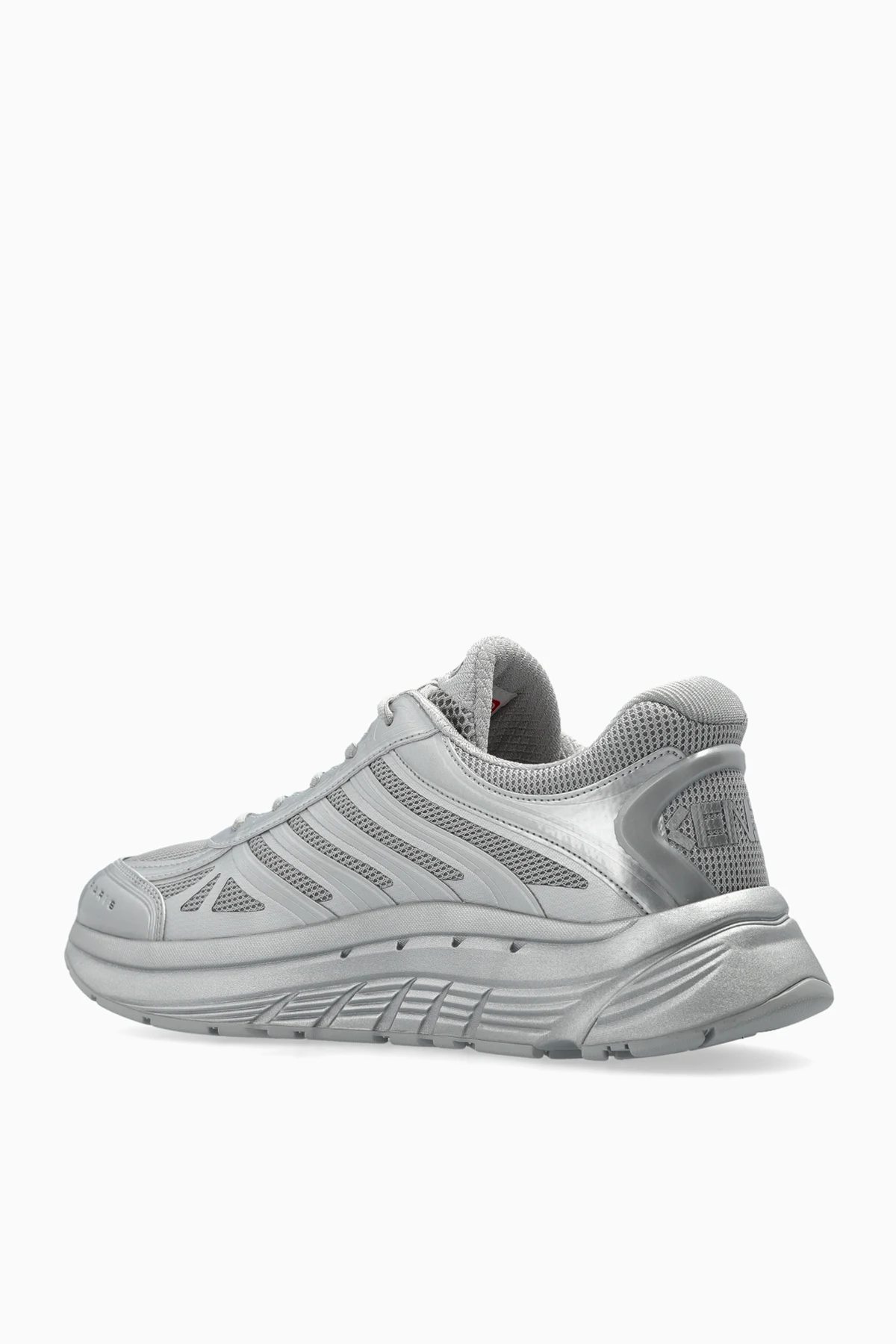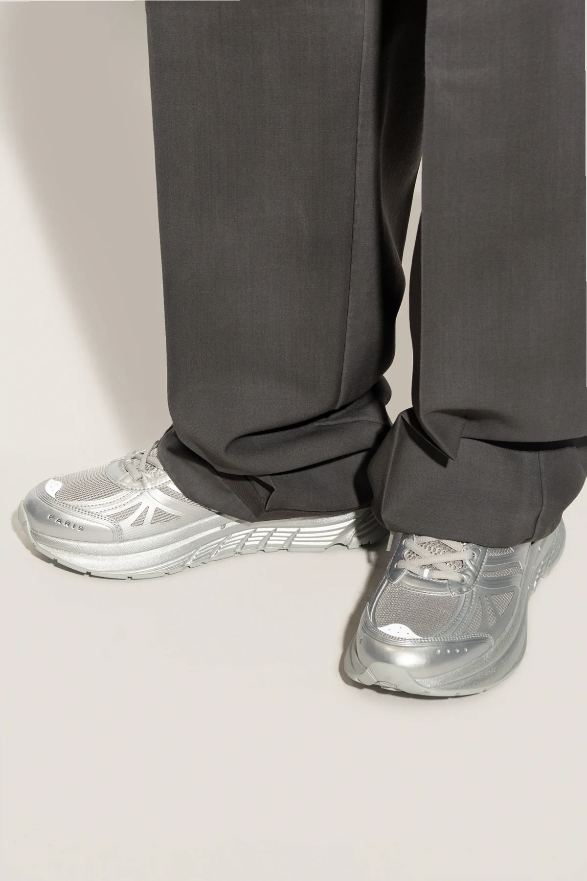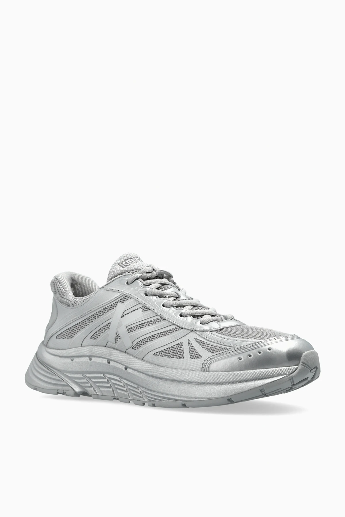 Wir präsentieren Ihnen exklusive „Pace Low“ Sneakers aus der Kollektion der renommierten Marke Kenzo. Diese außergewöhnlichen Sneakers, die in einem dominierenden Silberton gehalten sind, verbreiten eine Aura futuristischer Schönheit. Ihre niedrige Low-Top-Konstruktion garantiert außergewöhnlichen Komfort und Vielseitigkeit in der Anwendung.
