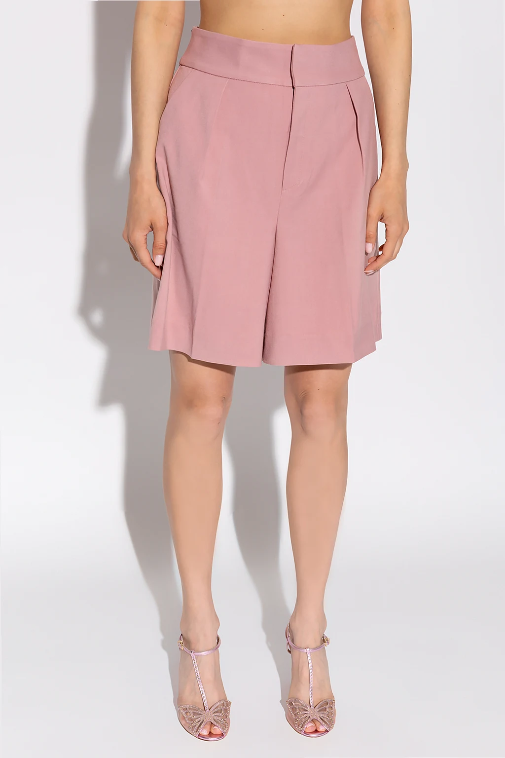 Blush pink ‘CollinsGZ’ high-waisted shorts from Gestuz. Made in part from recycled materials, this pair features a hook, button and zip closure, two front pockets, one back pocket and pleat details.