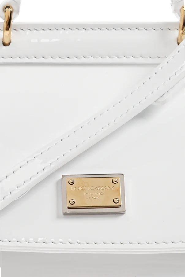 Exklusive Dolce & Gabbana Kids Handtasche begeistert mit einem klassischen Schnitt in rechteckiger Form und sanft ausgestellten Seiten. Die dezente, weiße Farbgebung unterstreicht die zeitlose Eleganz, während die verstärkte Konstruktion garantiert, dass die Tasche auch ohne Inhalt ihre perfekte Form behält. Glattes, lackiertes Kalbsleder sorgt für einen besonders minimalistischen und zugleich raffinierten Look des Produkts.