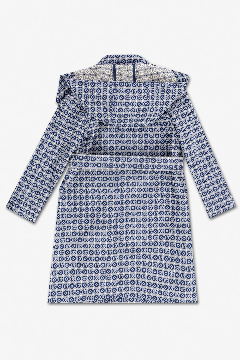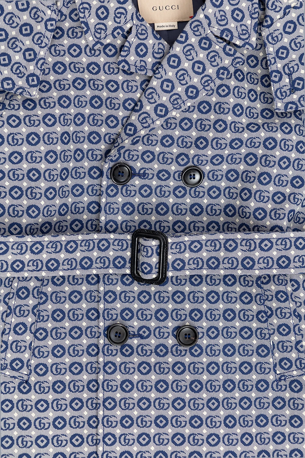 Beige and navy double-breasted coat from Gucci Kids. Crafted from cotton, this design features button fastenings, two slip pockets, peak lapels and long sleeves.