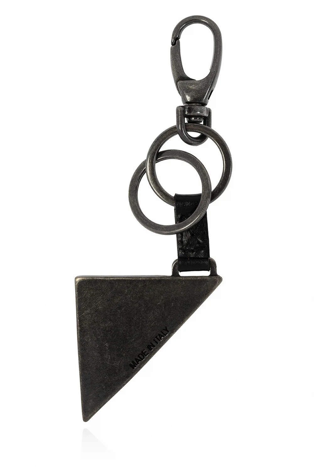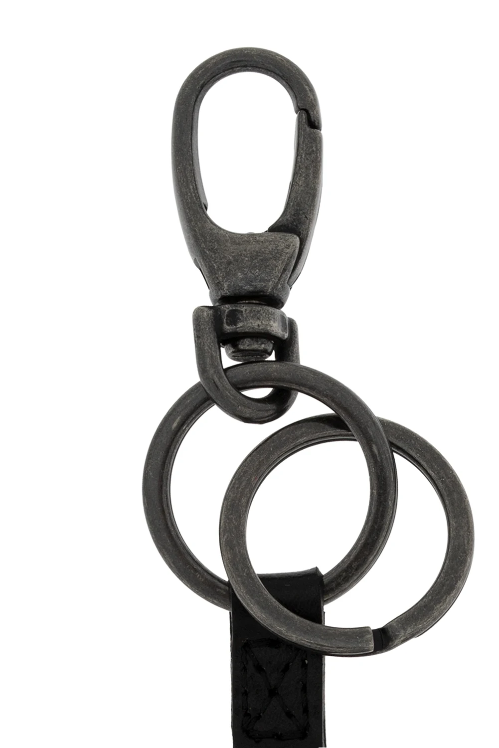 Antiqued silver-tone keyring from Diesel. Arriving with a lobster clasp, this item features black, red and white logo pendants.