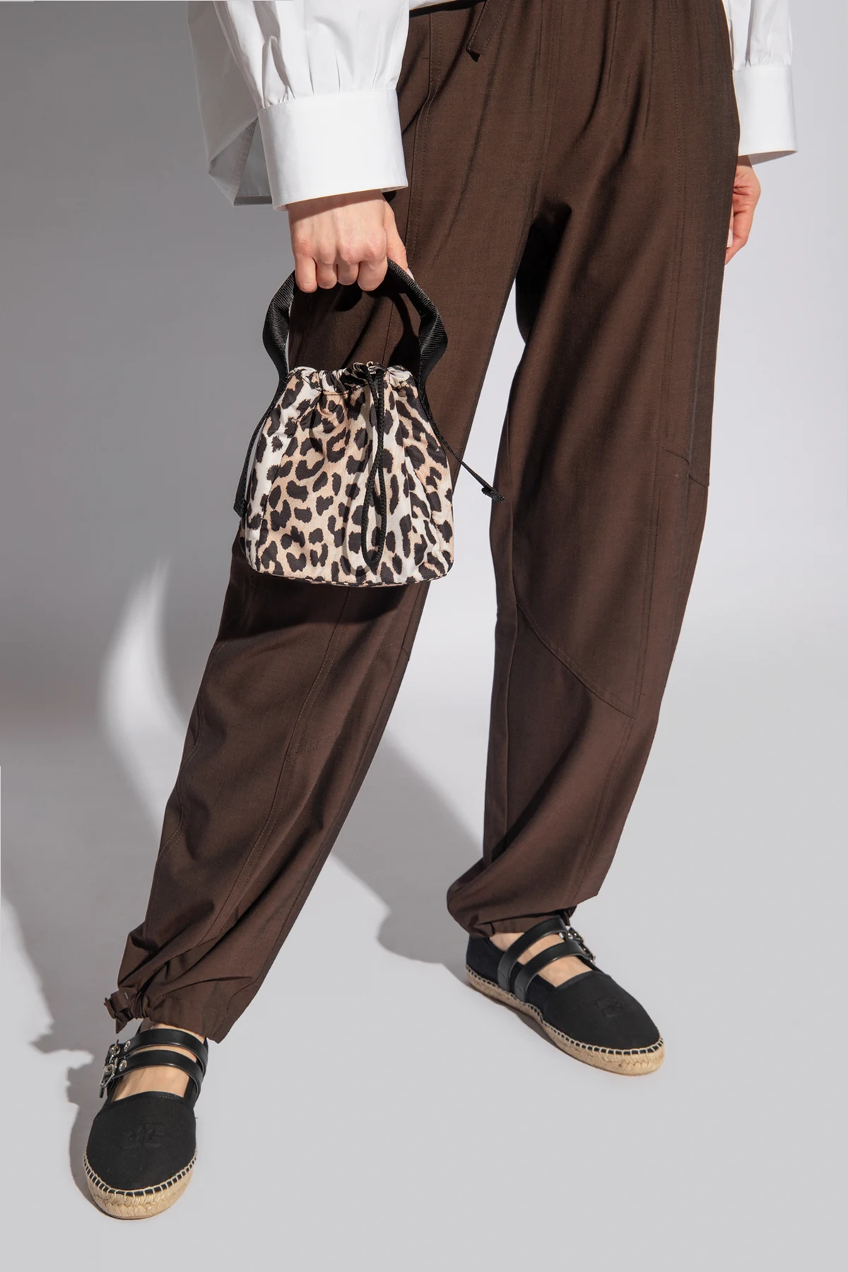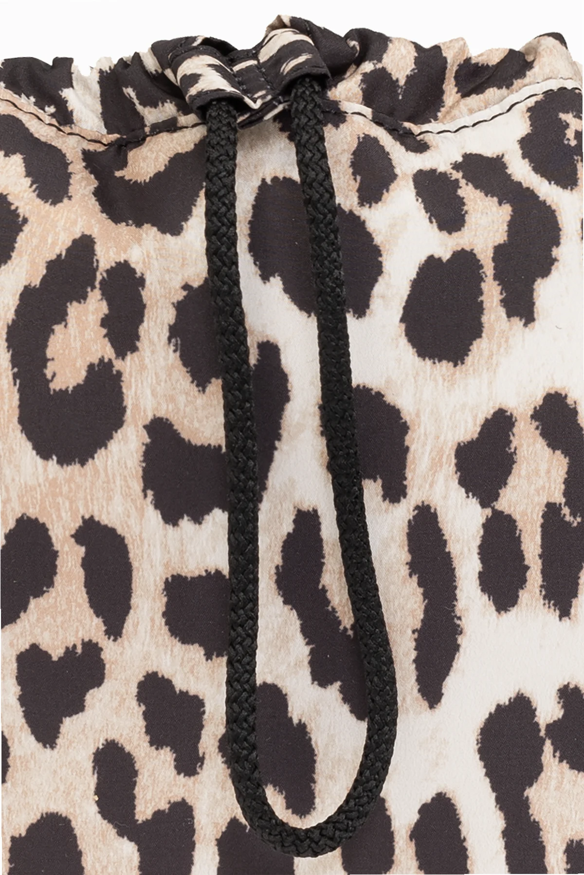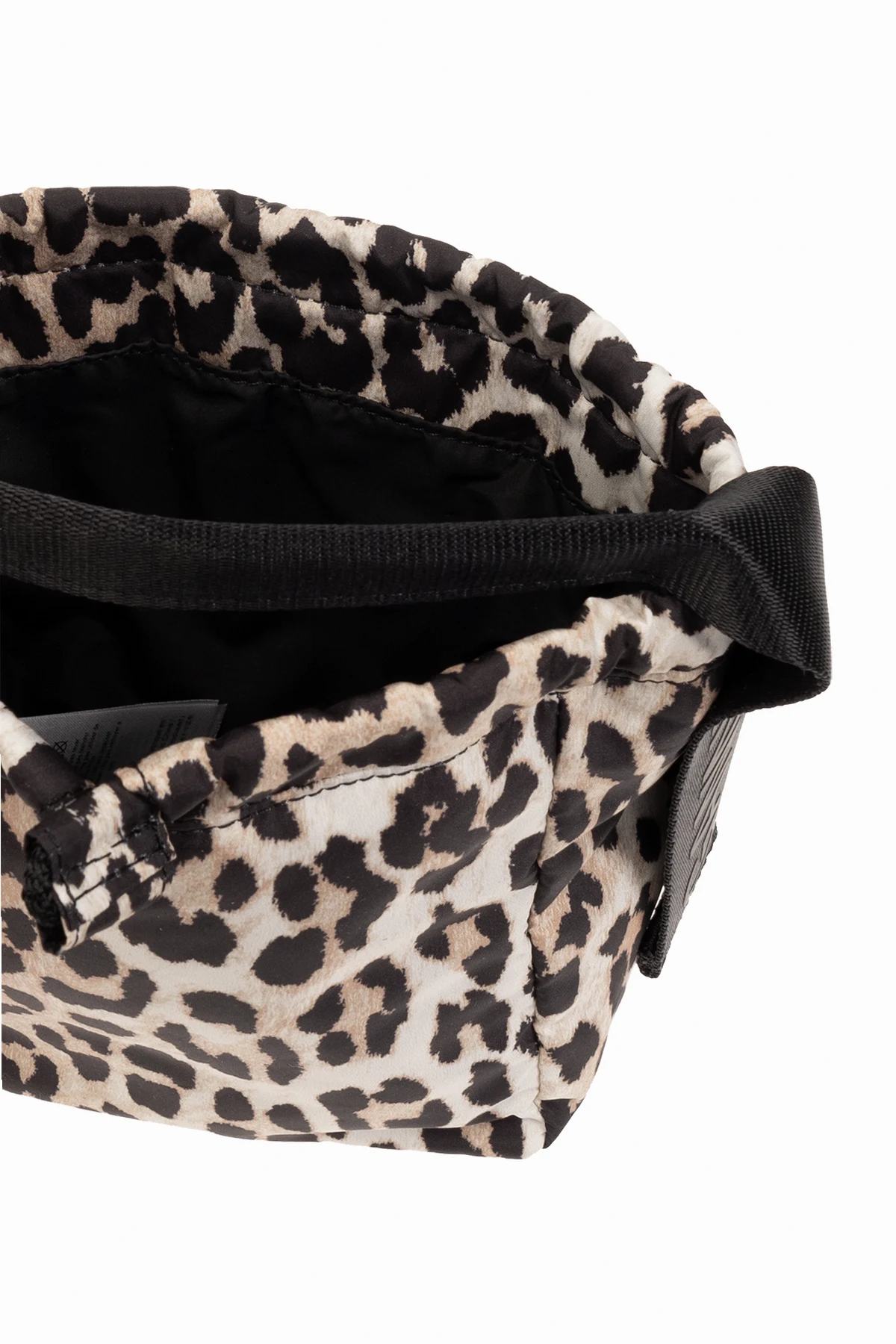 Aus 100% recyceltem Polyester , sowohl in der äußeren als auch in der inneren Schicht, zeigt diese Tasche nicht nur hohe Qualität, sondern auch eine Sorge um die natürliche Umwelt. Das schwarze Innenfutter kontrastiert mit der äußeren Wildheit des Musters, während der einheitlich schwarze Riemen ein bequemes Tragen der Tasche in der Hand oder am Handgelenk ermöglicht. Der minimalistische Charakter wird durch das Fehlen von Außentaschen und zusätzlichen Verzierungen hervorgehoben, was die Ganni Tasche zur Quintessenz von Klasse und gutem Geschmack macht. Mit Kordelzug, ermöglicht sie die Einstellung der Öffnung, und das subtil platzierte Markenlogo fügt einen exklusiven Charakter hinzu.