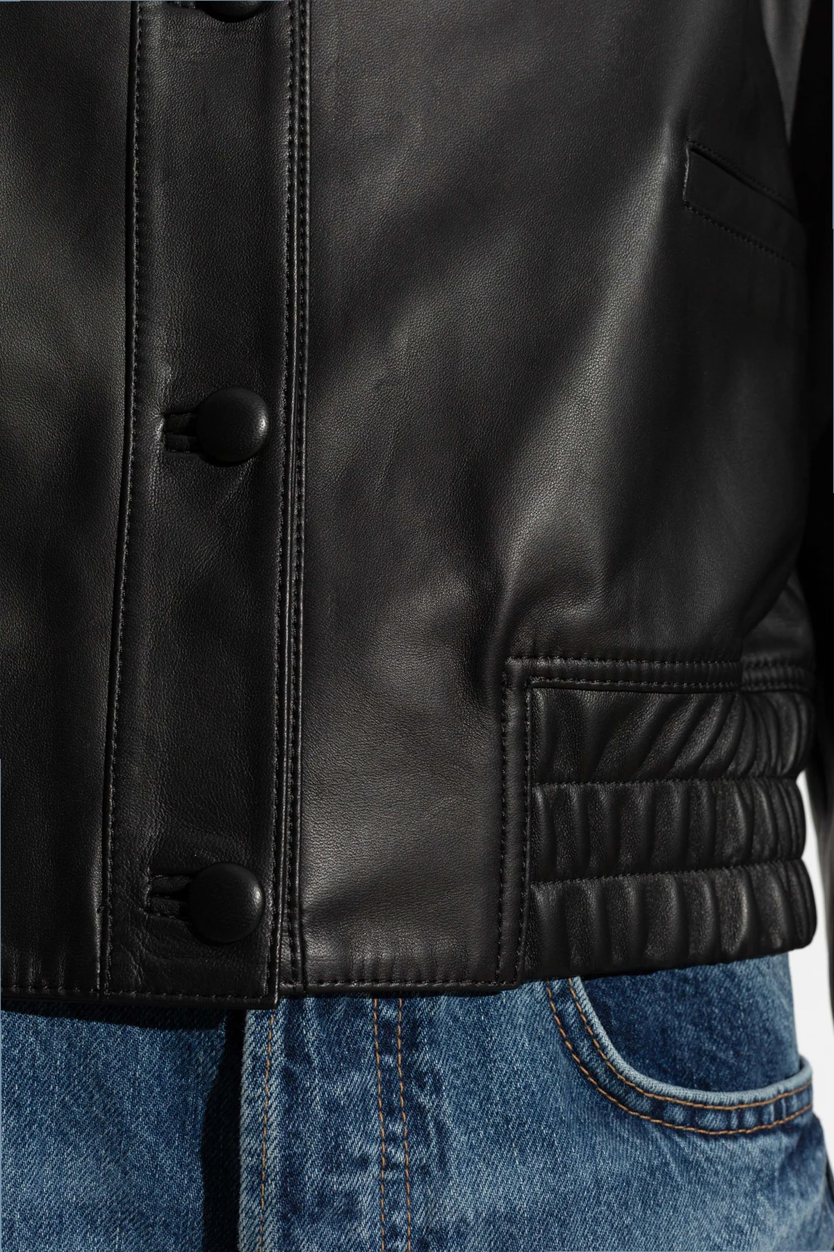 Hergestellt aus hochwertigem Leder, beeindruckt die Jacke mit einem einfachen, aber effektvollen Schnitt. Lange Ärmel und ein Kragen verleihen ihr klassischen Charme, während der lockere, gut sitzende Schnitt für Tragekomfort sorgt. Die gesamte Jacke wird mit Lederknöpfen geschlossen, die perfekt mit der glatten Textur des Materials harmonieren.