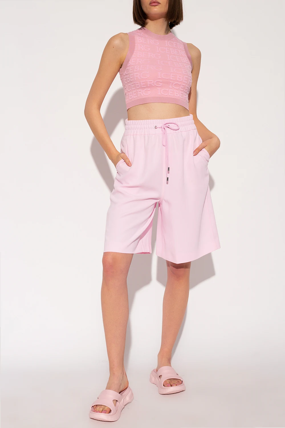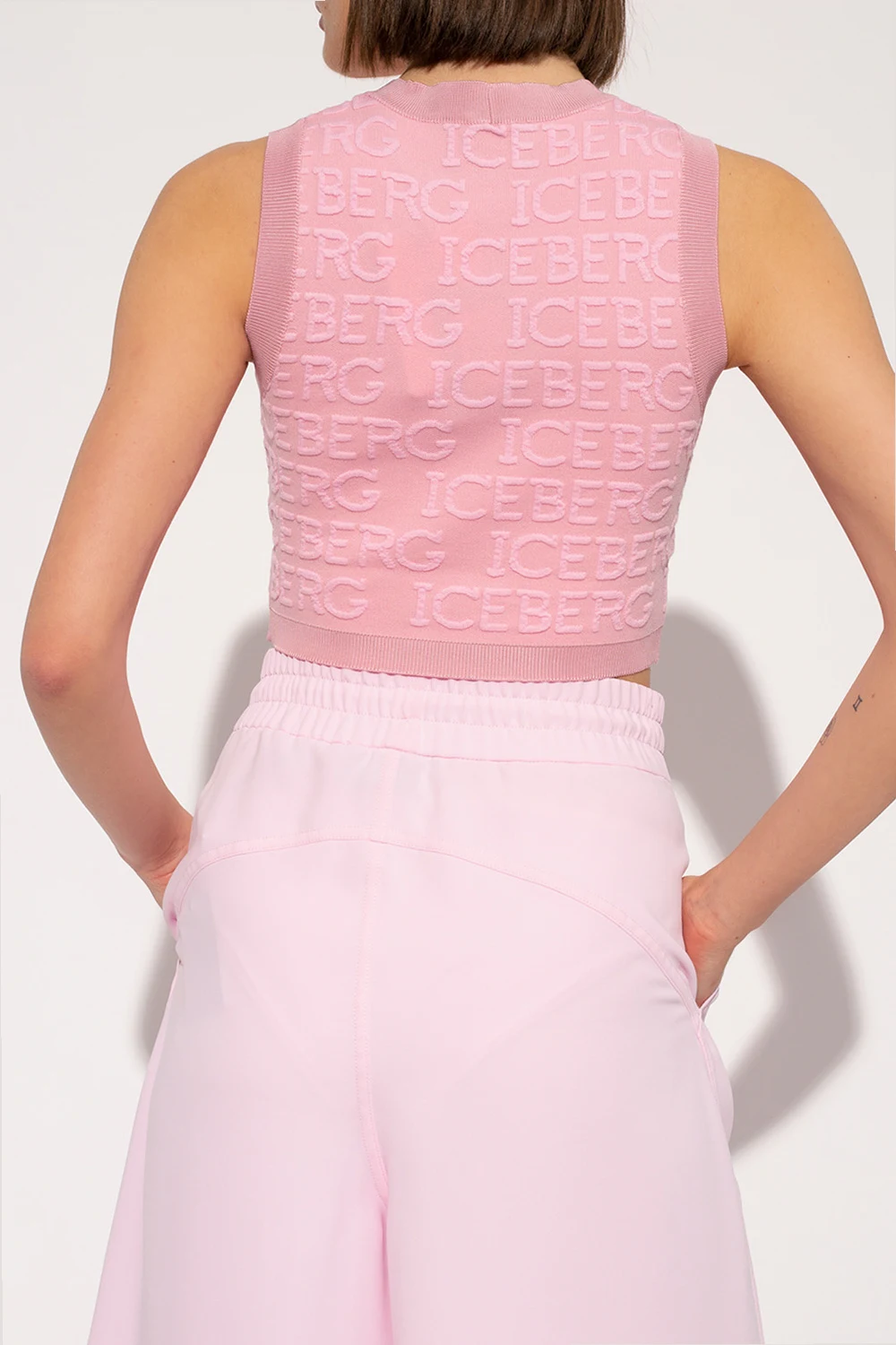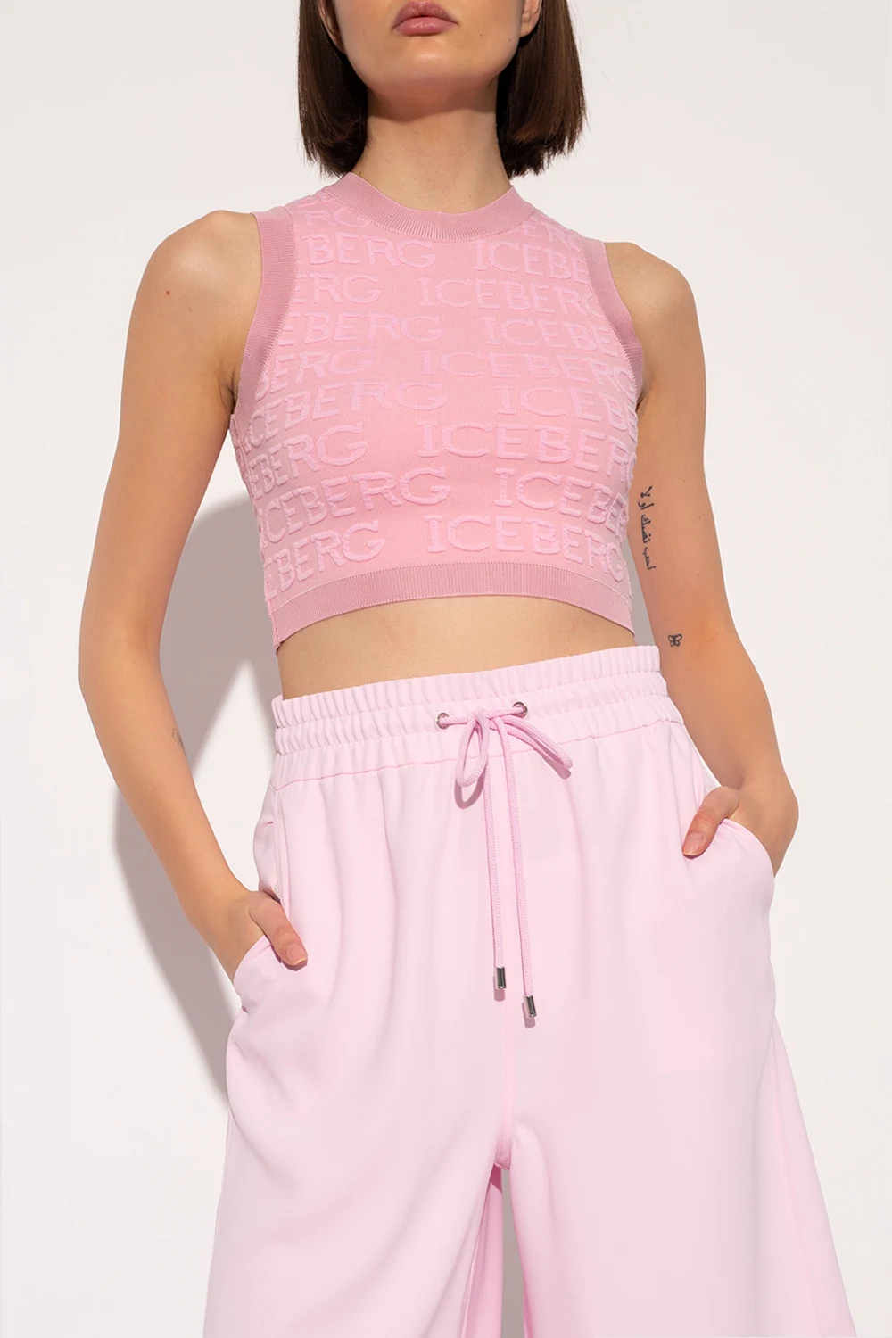 Pink crewneck tank top from Iceberg. Crafted from a cotton blend with a cropped fit, this style features an embroidered logo on the front and ribbed trims on the edges.