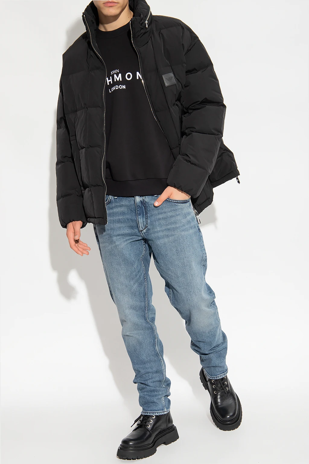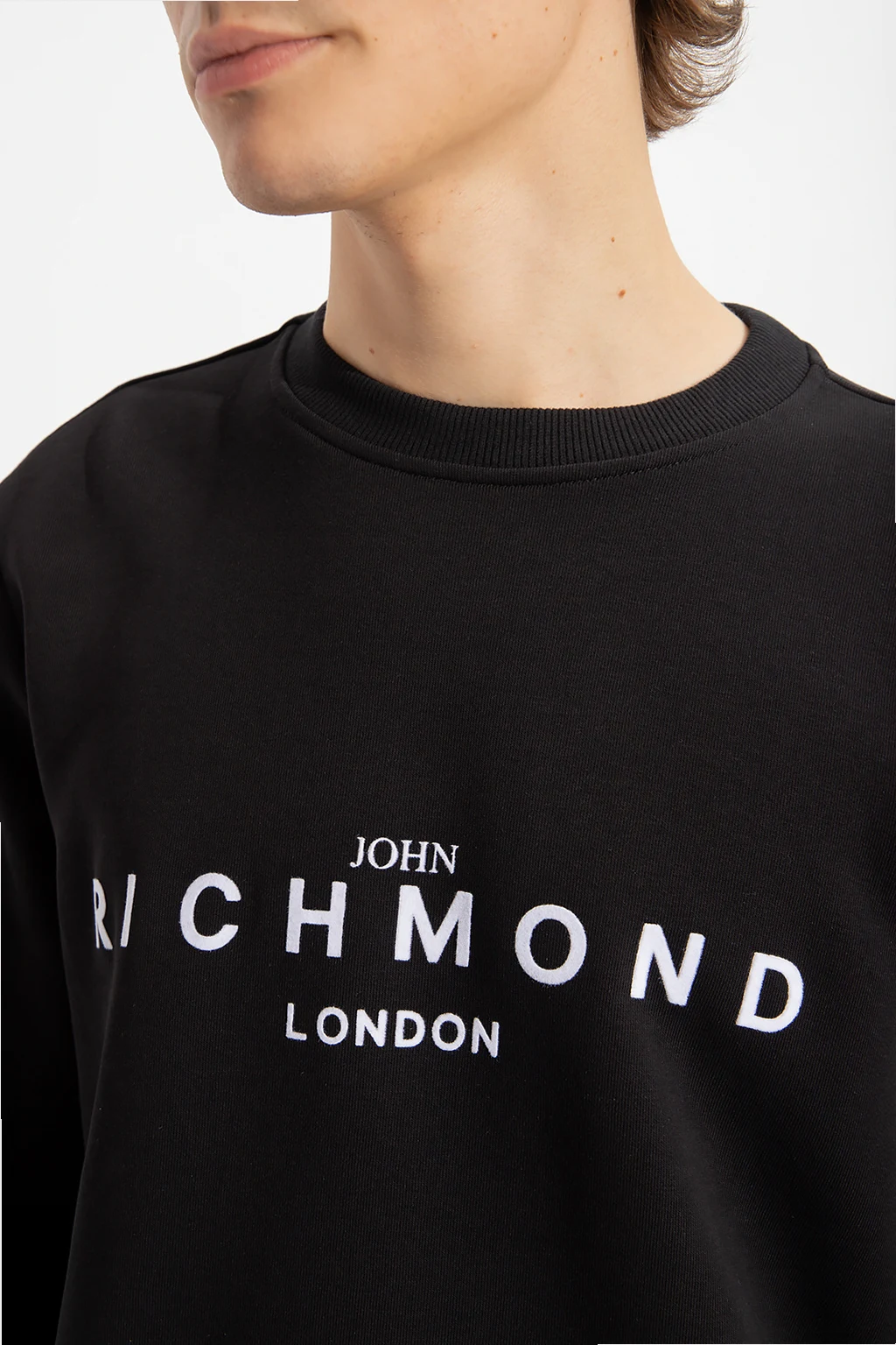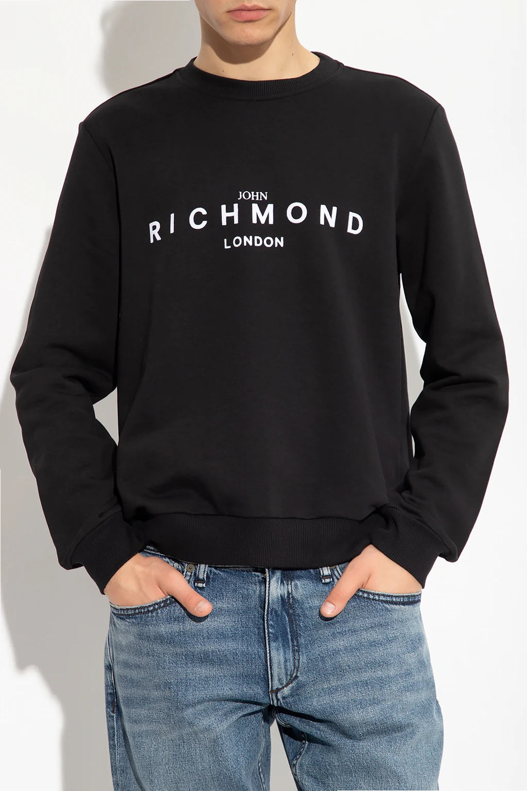 Black crewneck sweatshirt from John Richmond. Crafted from cotton, this long sleeve design features a white logo print, round neck and ribbed edges.