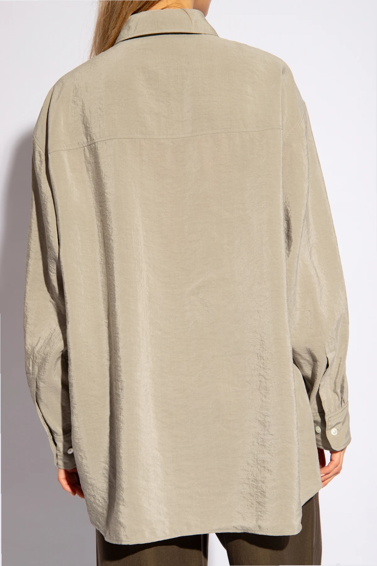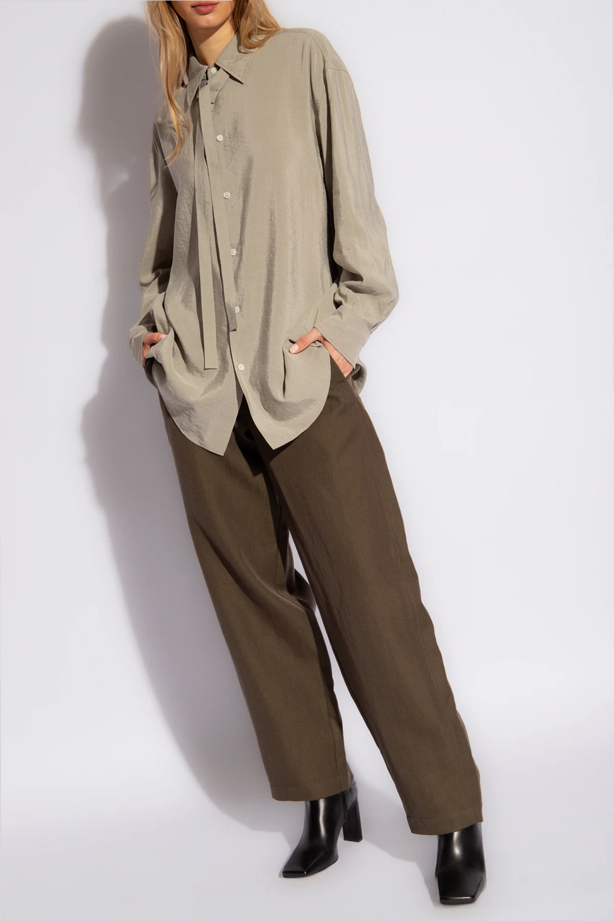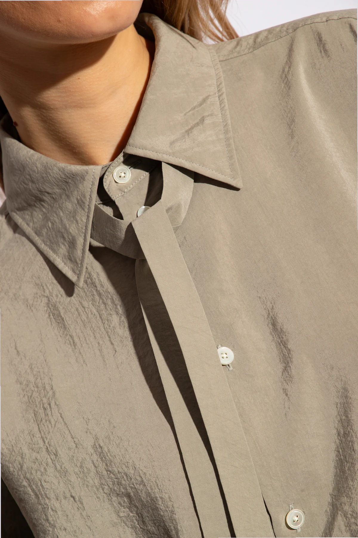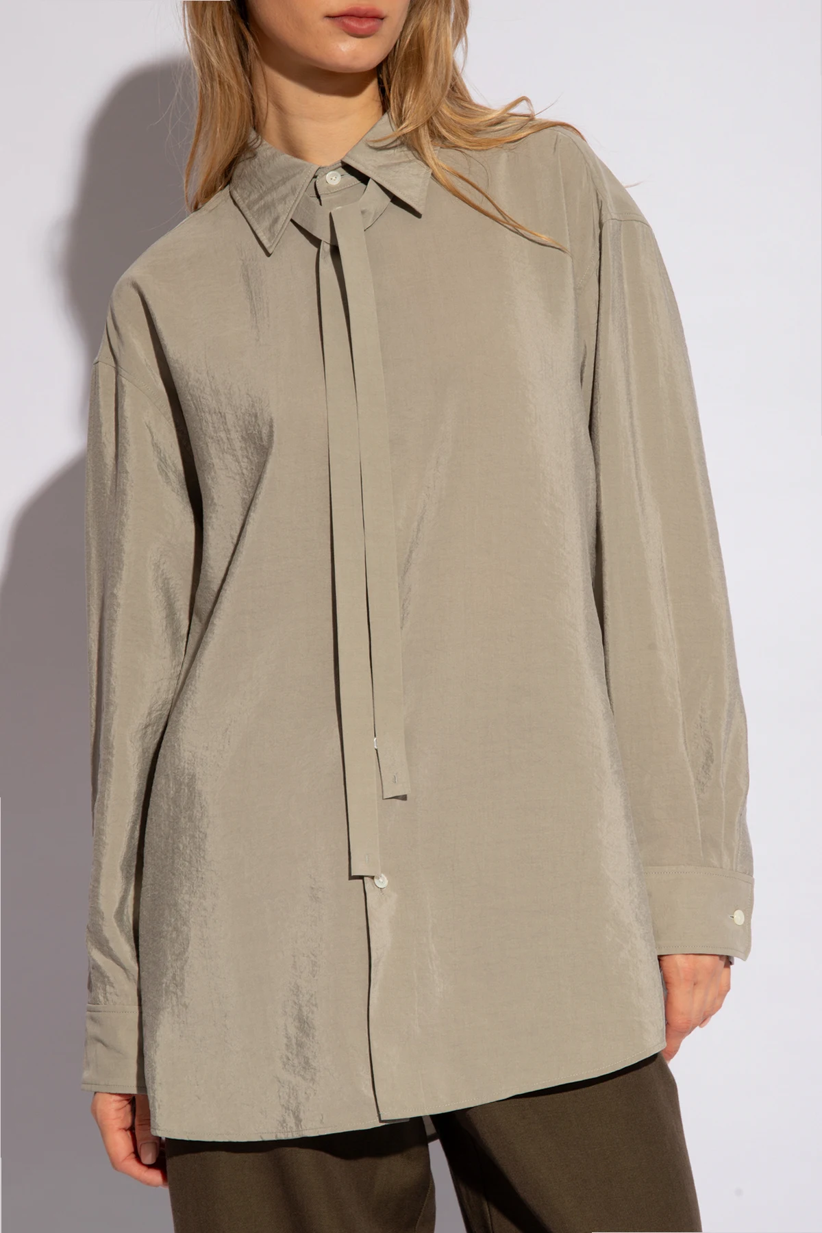 Grey shirt from Lemaire. Made from a silk and polyamide blend with an oversize fit, this style features a self-tie fastening on the collar, front button fastenings and long sleeves with button cuffs.