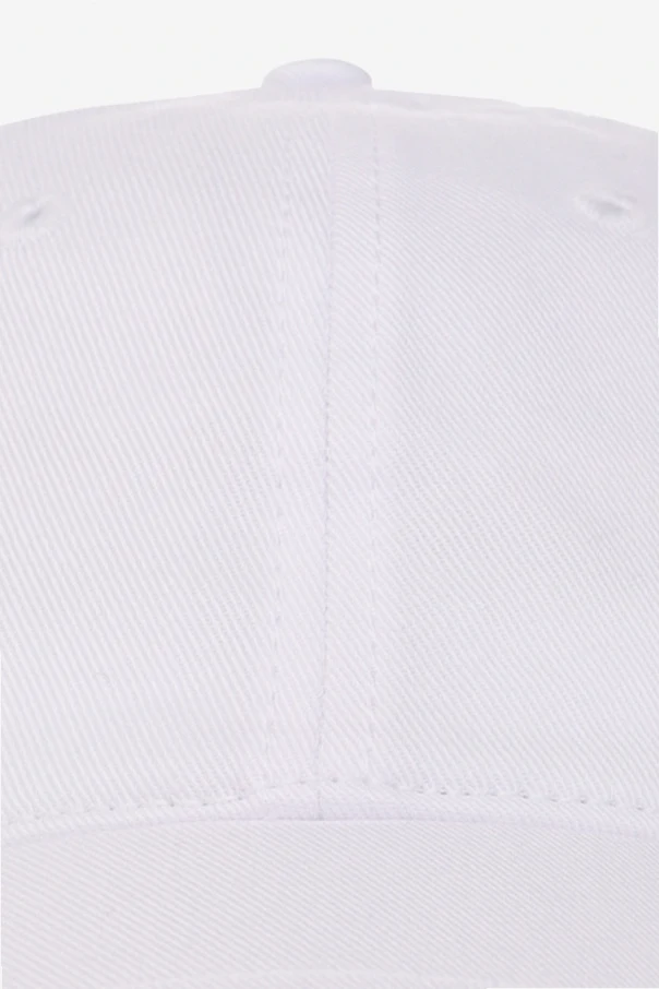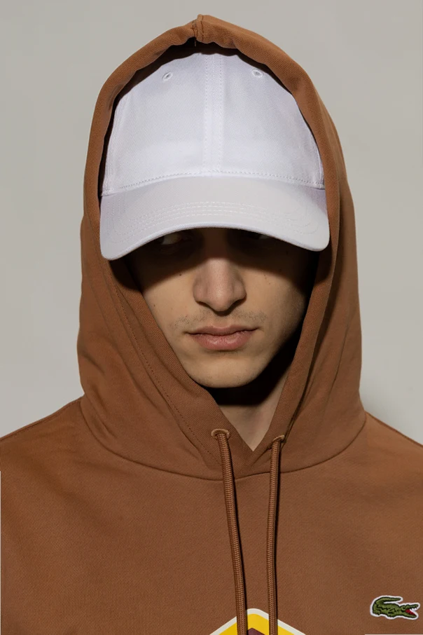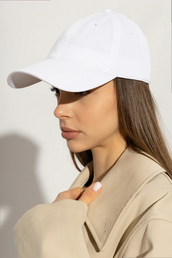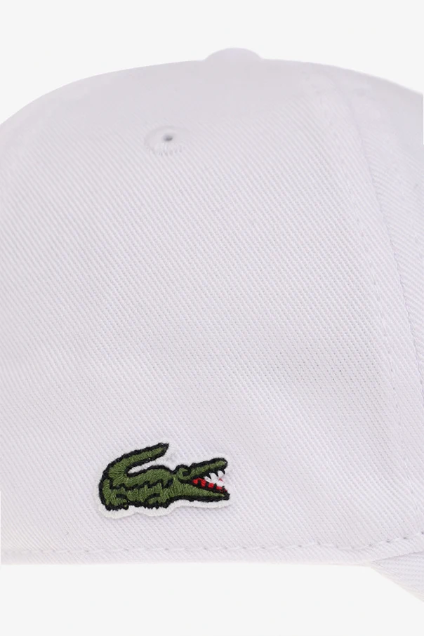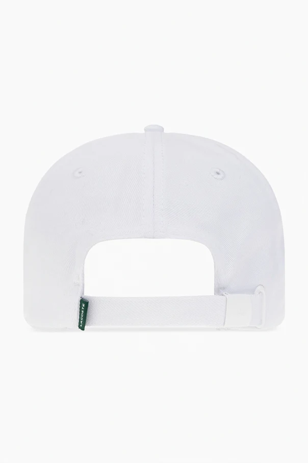 White baseball cap from Lacoste. Crafted from cotton, this item features a logo patch and adjustable buckle strap at the back.