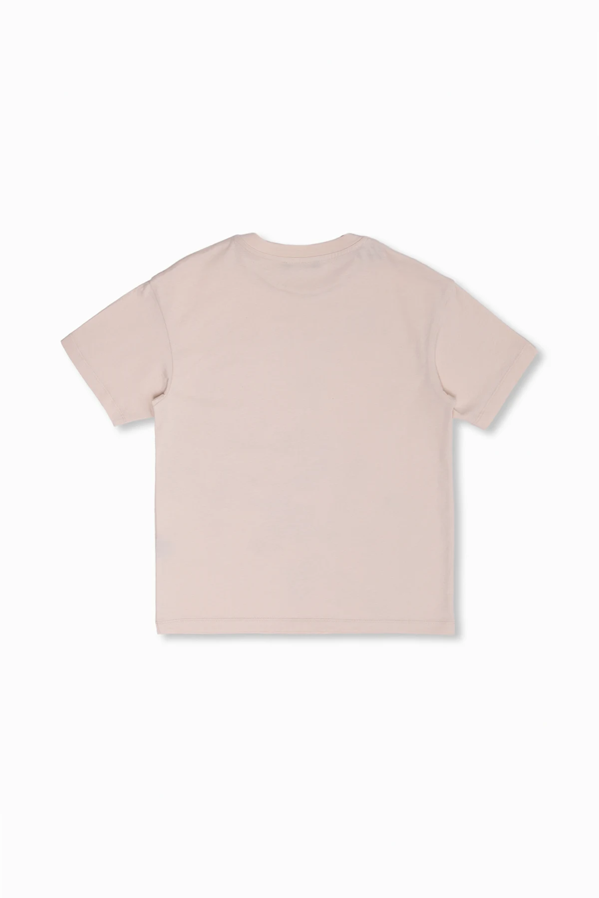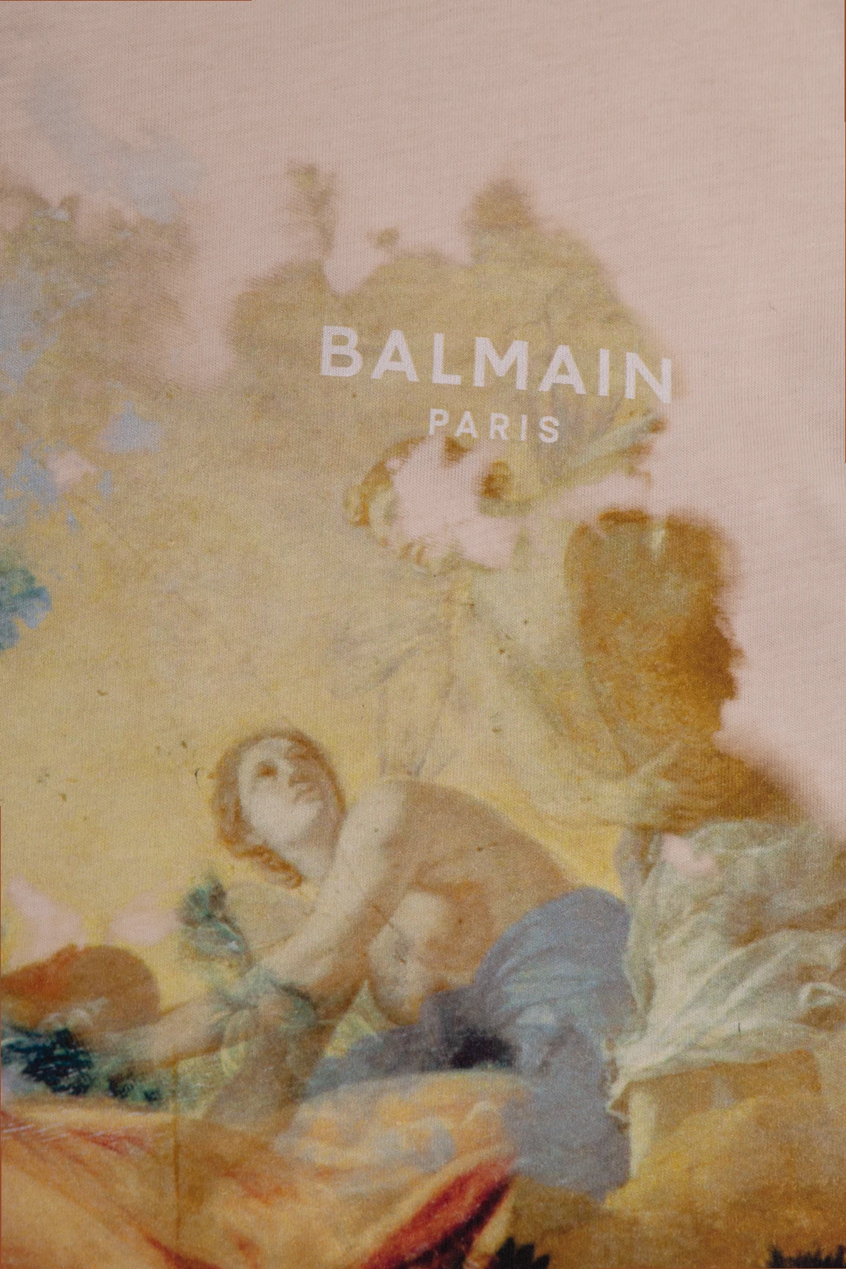 Light beige crewneck T-shirt from Balmain Kids. Made of cotton, this style features a colourful graphic print accompanied with the brand's logo, short sleeves and ribbing on the collar.
