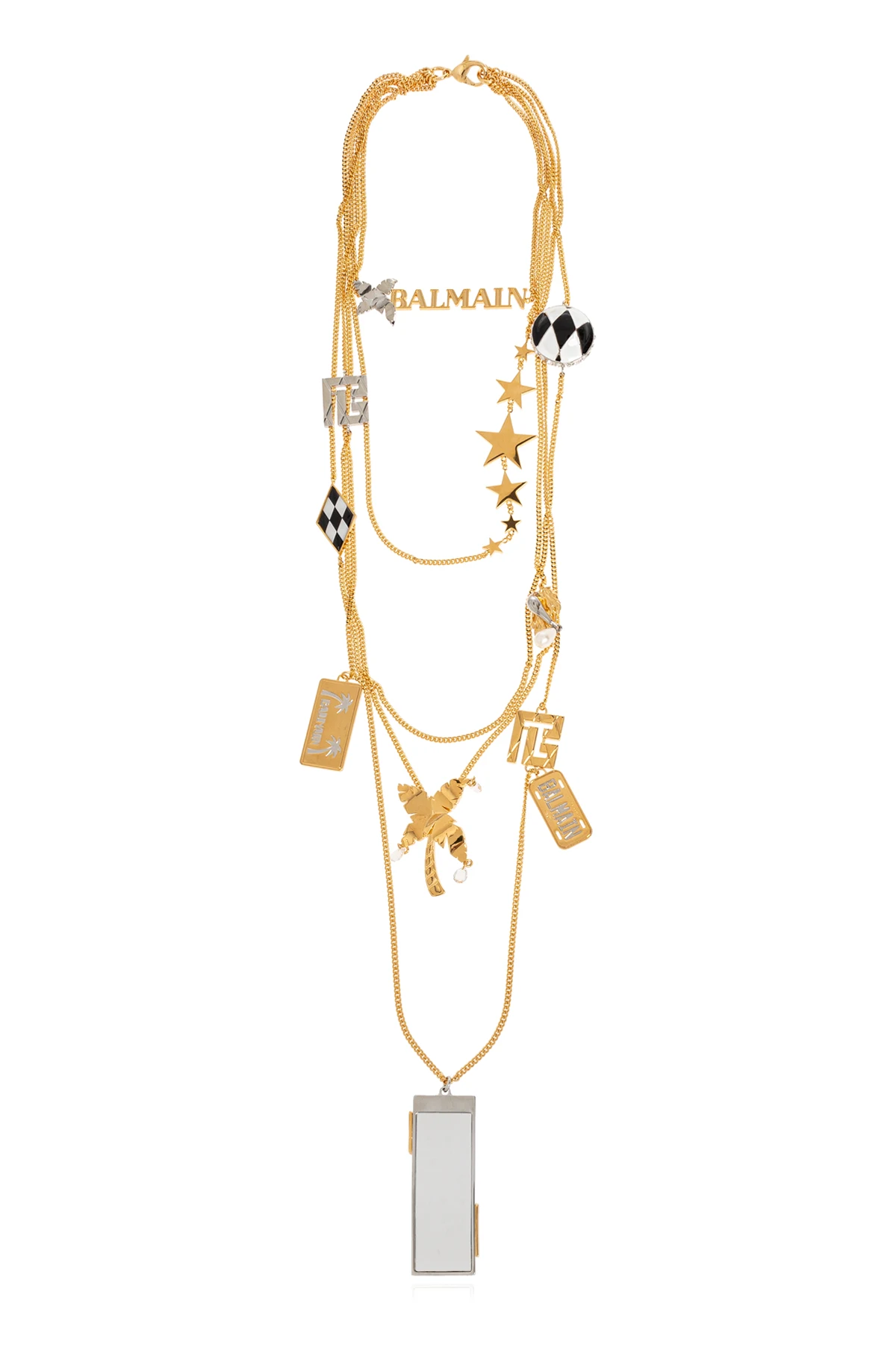 Das einzigartige Detail mit dem Balmain -Logo erhöht das Prestige der Halskette.
