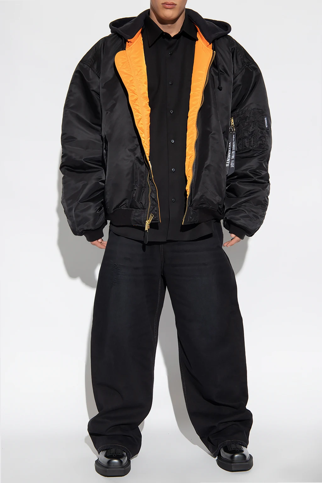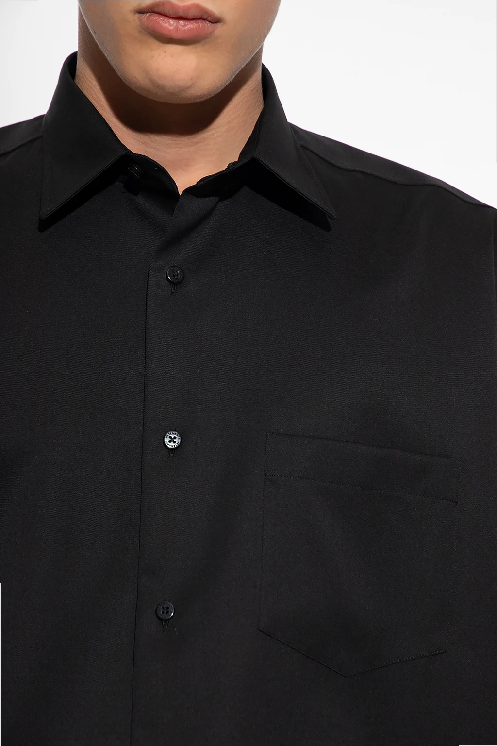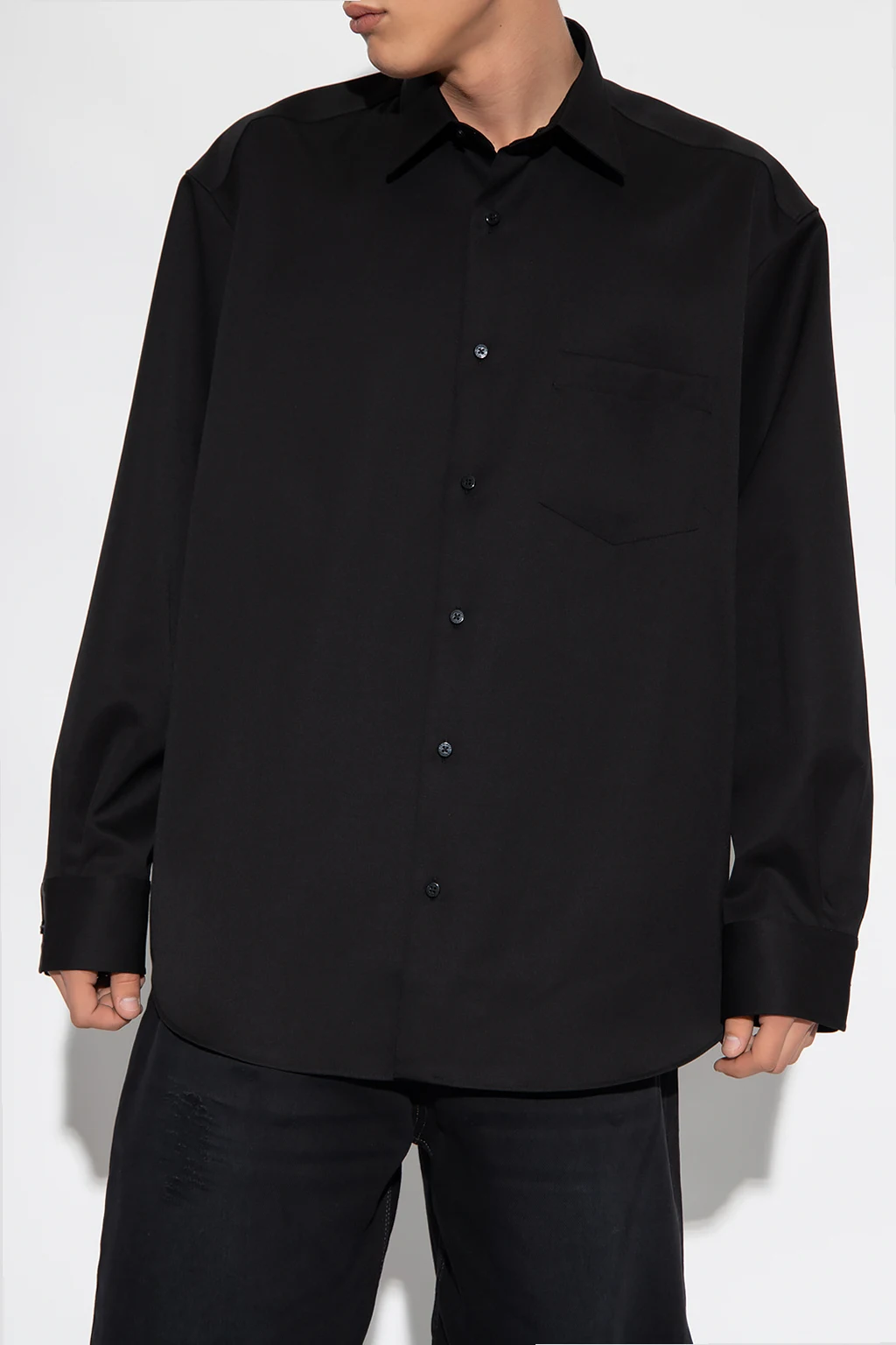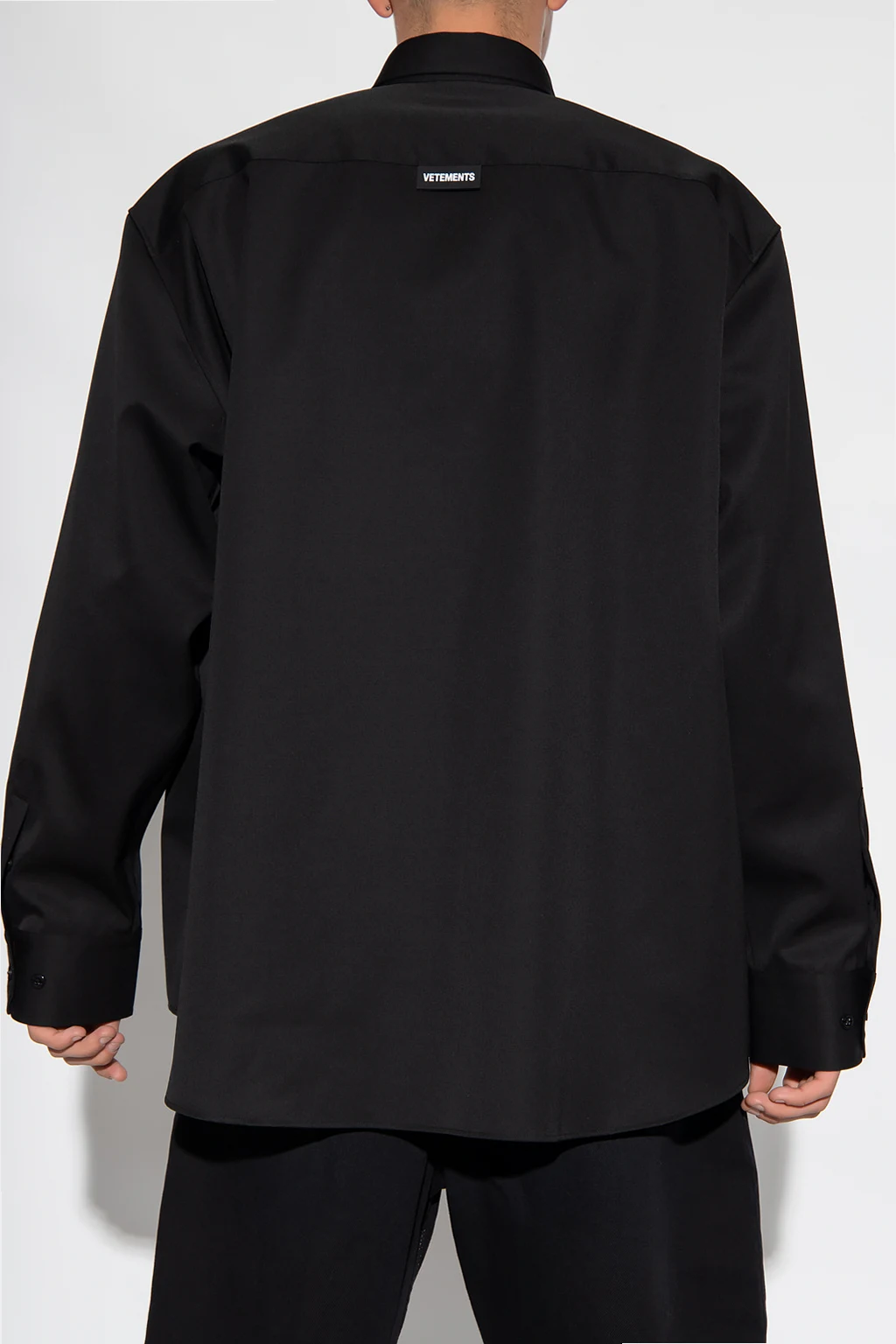 Black shirt from VTMNTS. Made of virgin wool, this design features button fastenings, white logo patch, slip pocket and long sleeves with buttoned cuffs.