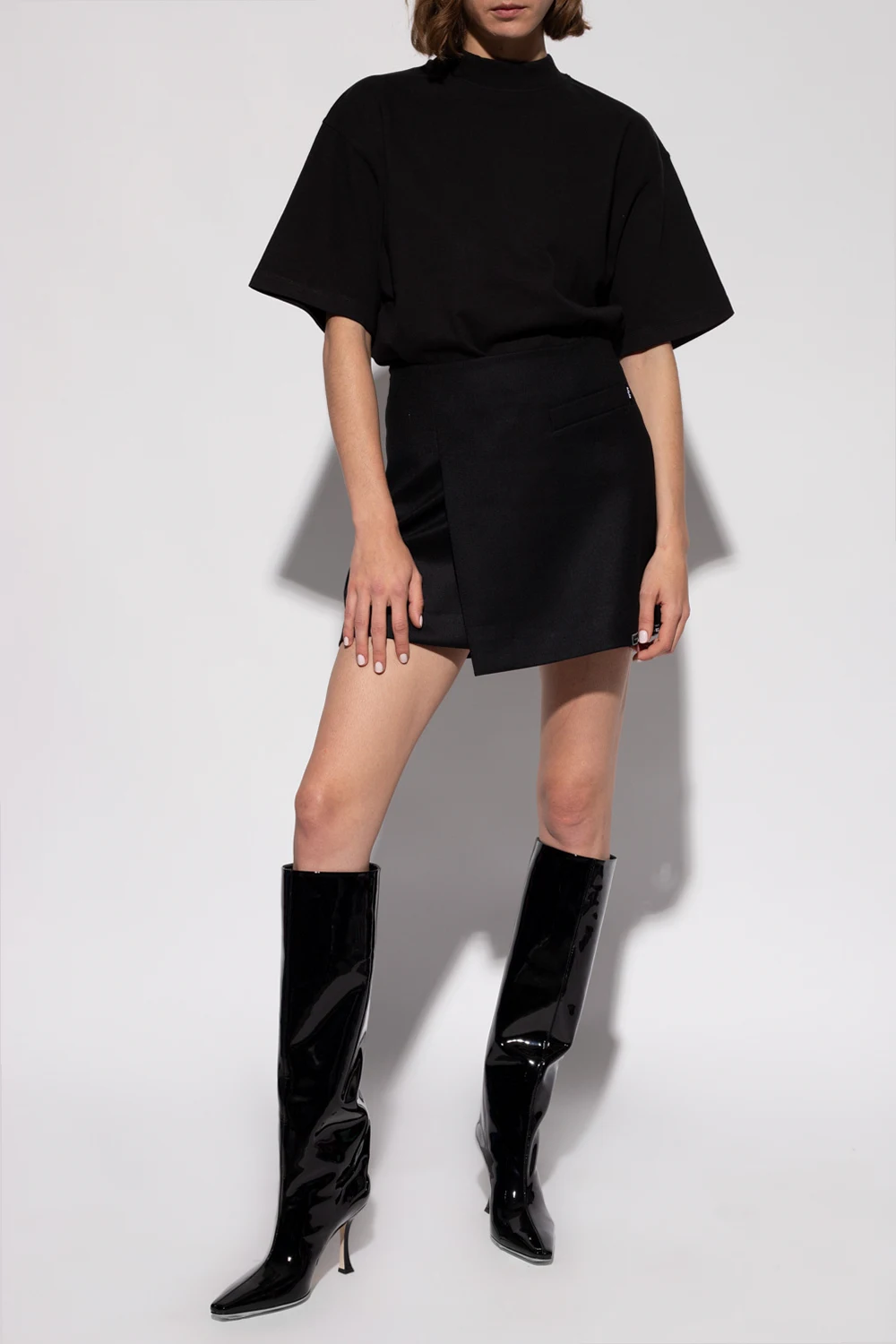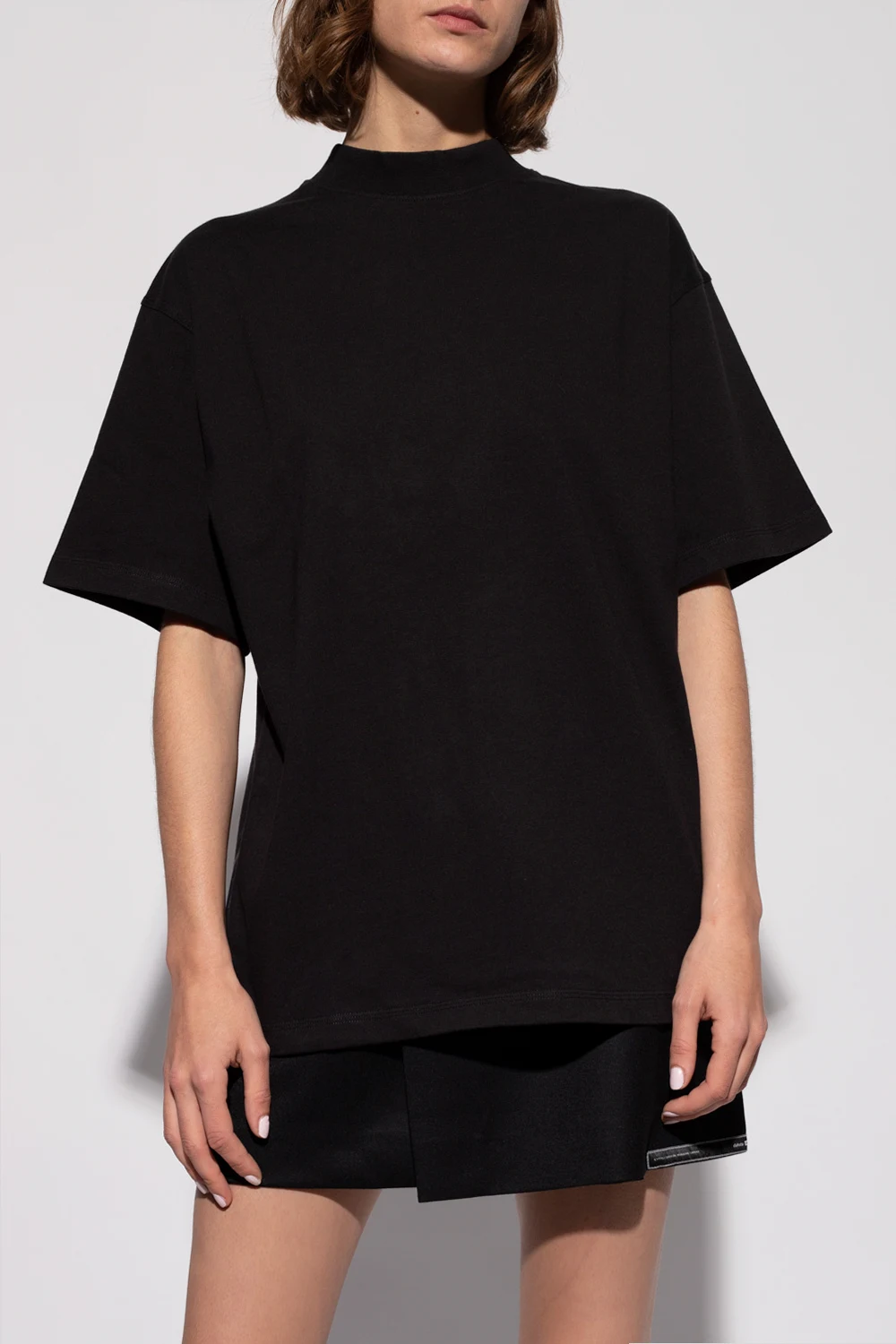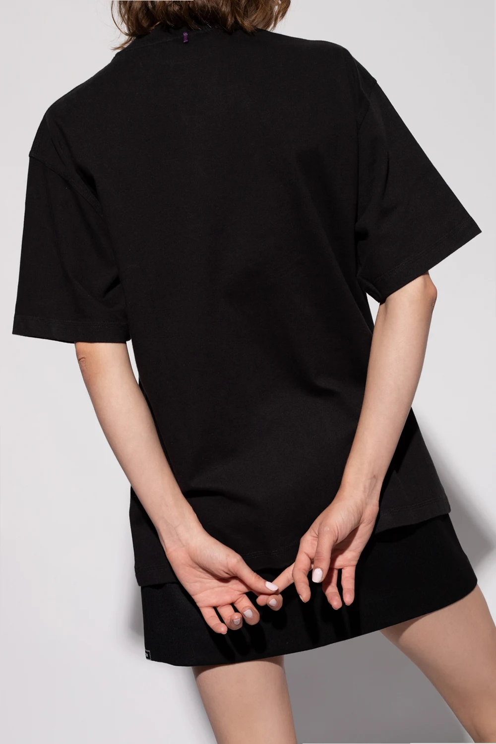 Black ‘Ferris’ crewneck T-shirt from Eytys. Crafted from organic cotton, this style showcases short sleeves, an elasticated collar and a purple logo patch on the back.